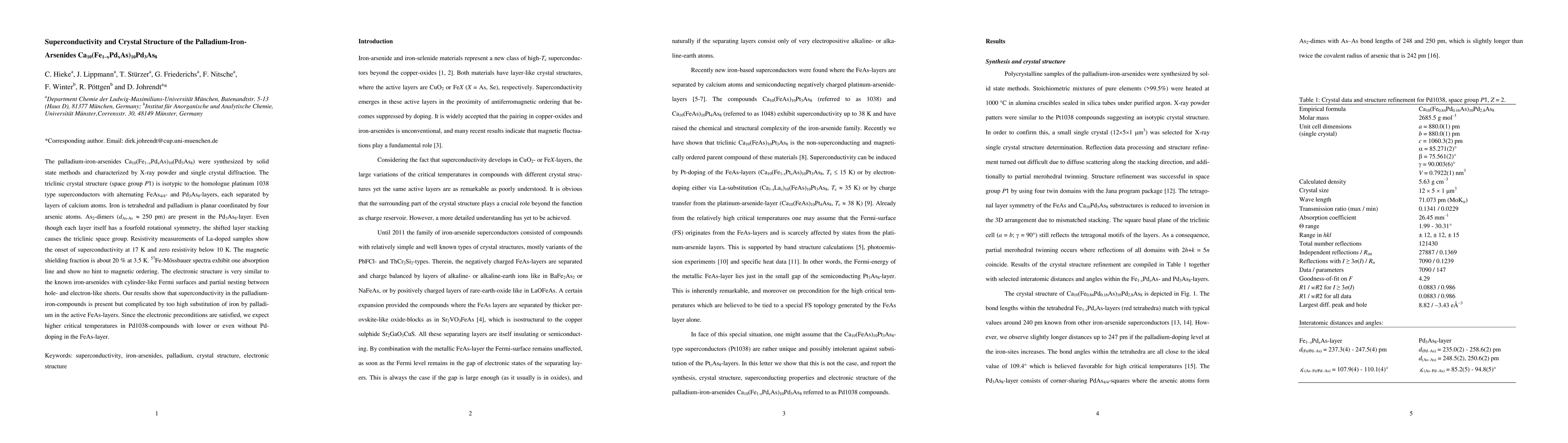 This study synthesizes and investigates the crystal structure and superconductivity of Ca10(Fe1-xPdxAs)10Pd3As8, revealing a triclinic structure with alternating FeAs4/4- and Pd3As8-layers. Superconductivity onsets at 17 K, with zero resistivity below 10 K, but is hindered by high Pd-doping in FeAs layers.