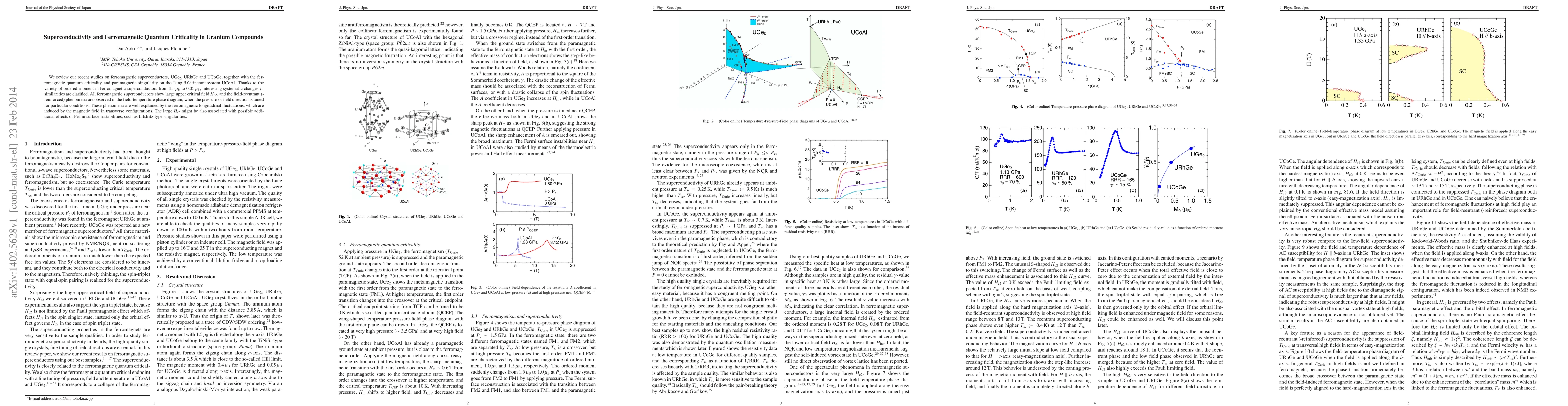 This paper reviews studies on ferromagnetic superconductors UGe2, URhGe, and UCoGe, highlighting their large upper critical fields and field-reentrant phenomena. The research also examines ferromagnetic quantum criticality and paramagnetic singularity in UCoAl, revealing systematic changes in ordered moments and the role of ferromagnetic longitudinal fluctuations in these phenomena.