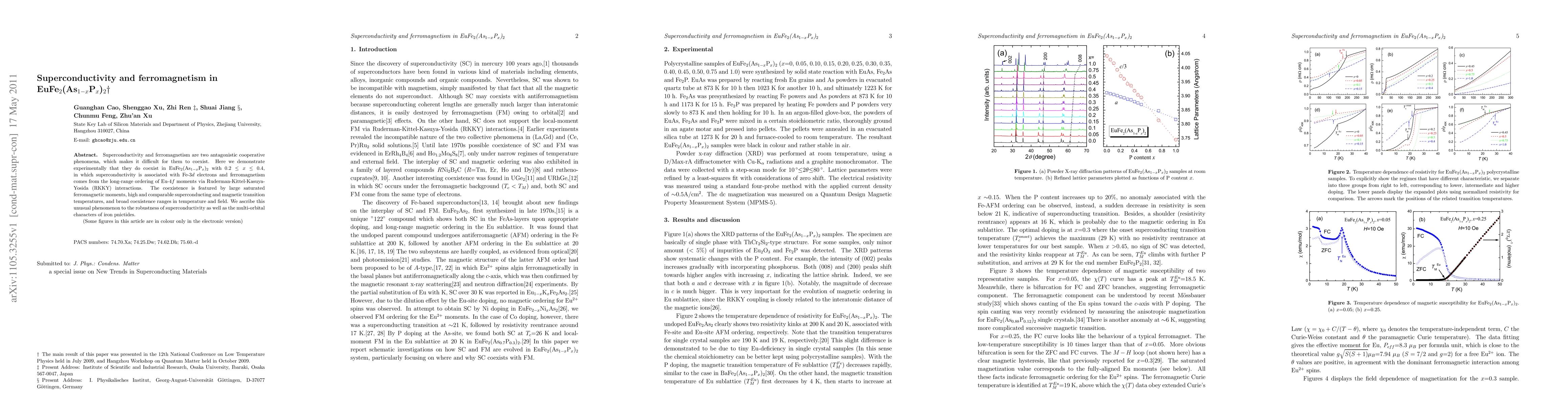 Scientists discovered that superconductivity and ferromagnetism coexist in a specific material called EuFe$_{2}$(As$_{1-x}$P$_{x}$)$_{2}$, which is unusual because these phenomena typically don't occur together. The researchers found that the materials exhibit high transition temperatures and robust superconductivity despite the presence of ferromagnetism.