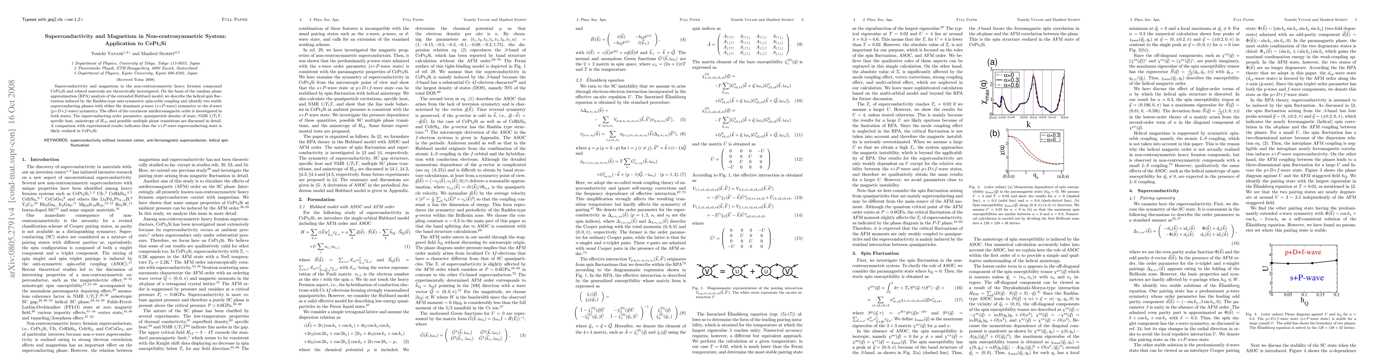 This paper investigates superconductivity and magnetism in the non-centrosymmetric heavy fermion compound CePt$_3$Si using RPA analysis. It identifies two stable superconducting phases, one with $s$ + $P$-wave and another with $p$ + $D$ + $f$-wave symmetry, and discusses their properties and potential phase transitions.