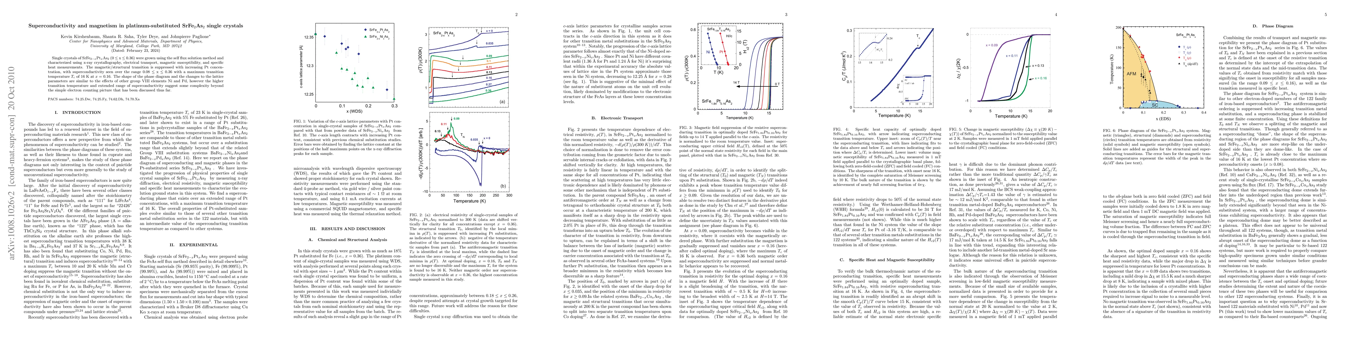 This study investigates the impact of platinum substitution on the superconducting and magnetic properties of SrFe2As2 single crystals. The research reveals that superconductivity emerges and persists up to a platinum concentration of x = 0.36, with a peak transition temperature of 16 K at x = 0.16, while the magnetic/structural transition is suppressed.