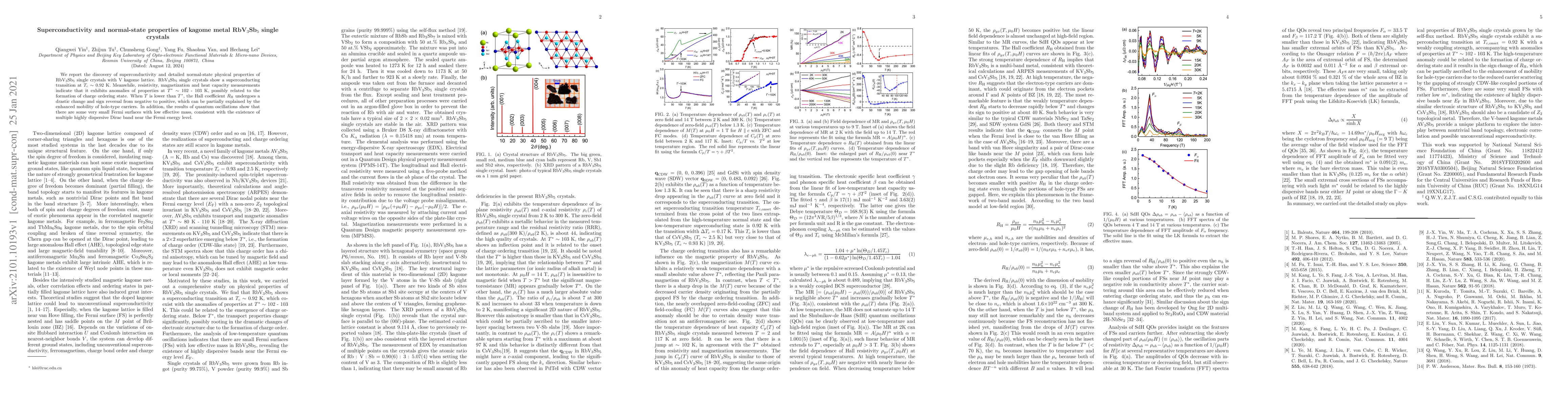 RbV3Sb5 single crystals exhibit superconductivity at Tc ~ 0.92 K and show anomalies at T* ~ 102-103 K, possibly indicating charge ordering, alongside unusual normal-state properties like a sign reversal in the Hall coefficient and evidence of small Fermi surfaces.