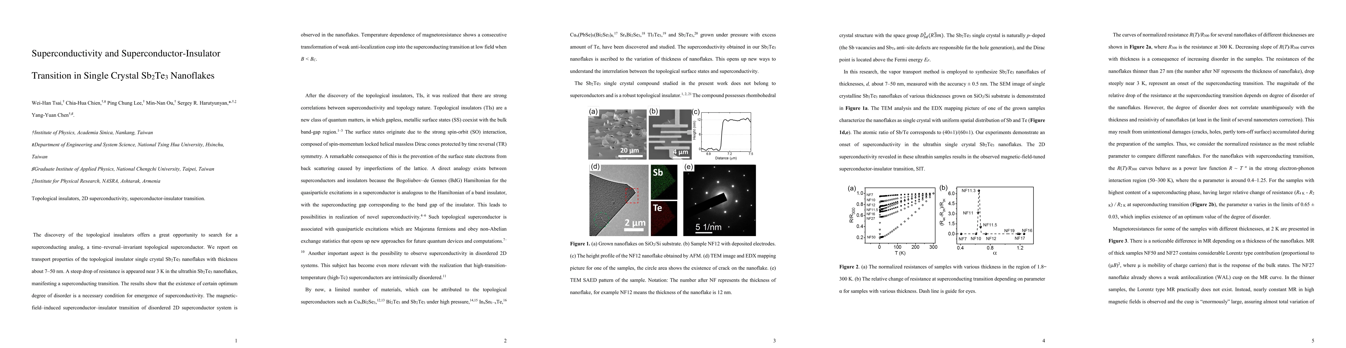 This paper investigates the transport properties of $Sb2Te3$ nanoflakes, revealing a superconducting transition near $3K$ and a superconductor-insulator transition under magnetic field, indicating that a specific level of disorder is essential for superconductivity emergence. The study also observes a transformation from weak antilocalization to superconductivity with low magnetic fields.