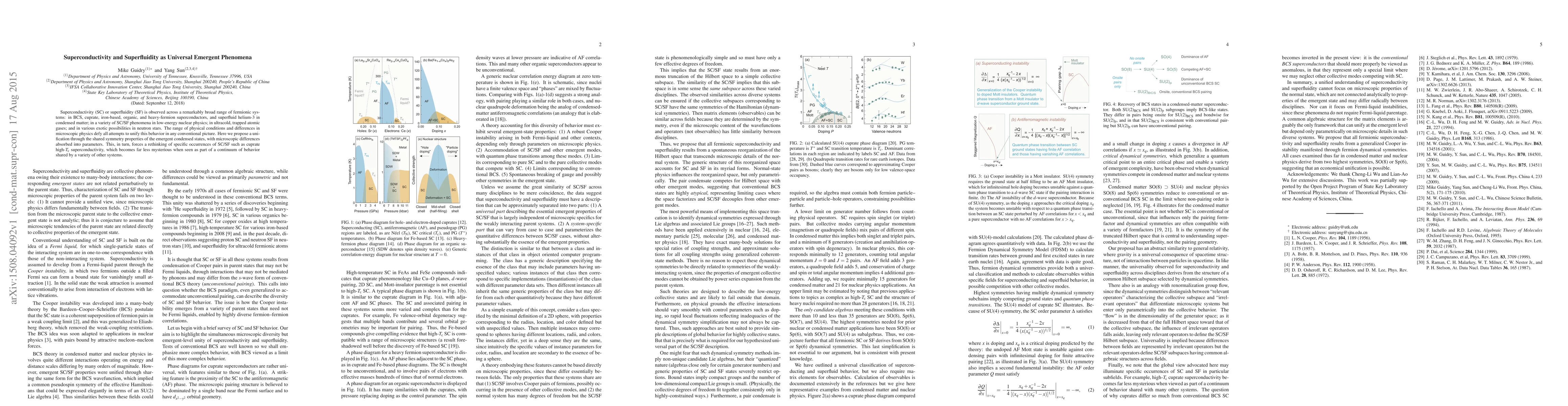 Superconductivity (SC) or superfluidity (SF) is observed across a remarkably broad range of fermionic systems: in BCS, cuprate, iron-based, organic, and heavy-fermion superconductors, and superfluid helium-3 in condensed matter; in a variety of SC/SF phenomena in low-energy nuclear physics; in ultracold, trapped atomic gases; and in various exotic possibilities in neutron stars. The range of physical conditions and differences in microscopic physics defy all attempts to unify this behavior in any conventional picture. Here we propose a unification through the shared symmetry properties of the emergent condensed states, with microscopic differences absorbed into parameters. This, in turn, forces a rethinking of specific occurrences of SC/SF such as cuprate high-temperature superconductivity, which becomes far less mysterious when seen as part of a continuum of behavior shared by a variety of other systems.