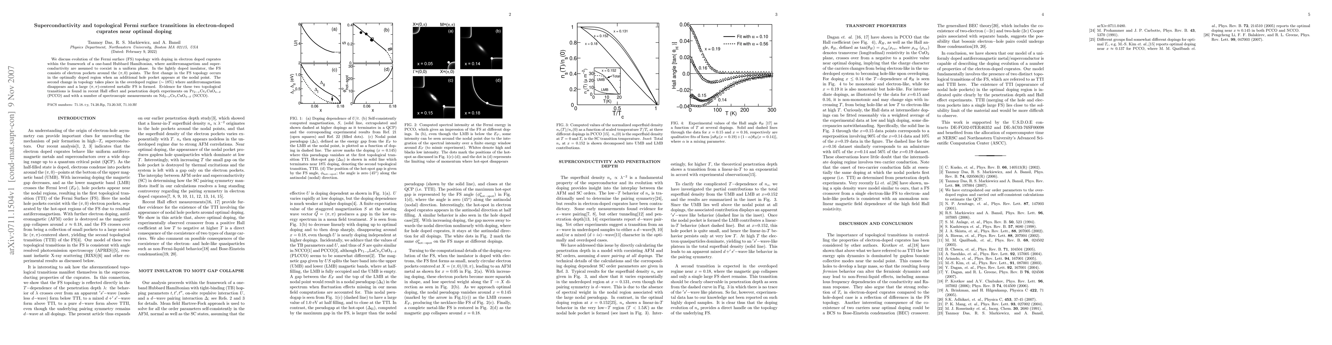 This paper investigates the evolution of Fermi surface topology in electron-doped cuprates using a one-band Hubbard model, revealing two topological transitions: an additional hole pocket at optimal doping and a large metallic Fermi surface in the overdoped regime. Experimental evidence from Hall effect and spectroscopic studies supports these transitions.