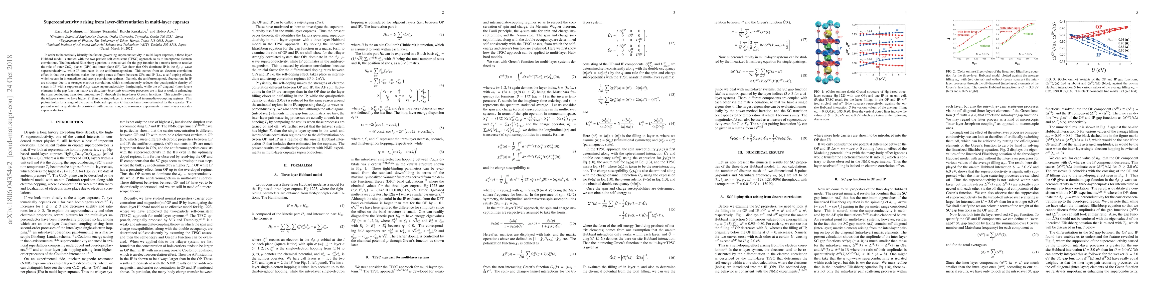 This paper investigates the role of layer differentiation in multi-layer cuprates using a three-layer Hubbard model and the TPSC approach, revealing that outer CuO$_2$ planes dominate $d_{x^{2}-y^{2}}$-wave superconductivity while inner planes dominate antiferromagnetism due to differing doping rates. Inter-layer pair scattering enhances the superconducting transition temperature $T_{\text{c}}$, making trilayer systems more superconducting than single-layer in weak- and intermediate-coupling regimes.