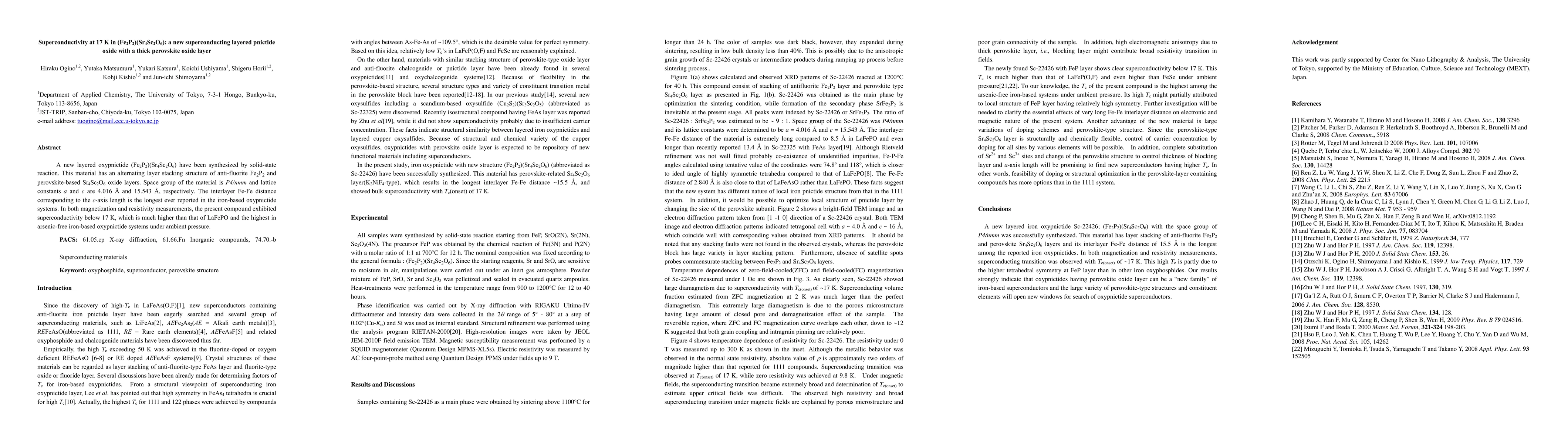 A new layered oxypnictide (Fe2P2)(Sr4Sc2O6) exhibits superconductivity at 17 K, with the highest transition temperature in arsenic-free iron-based oxypnictide systems, featuring a unique interlayer Fe-Fe distance in its crystal structure.