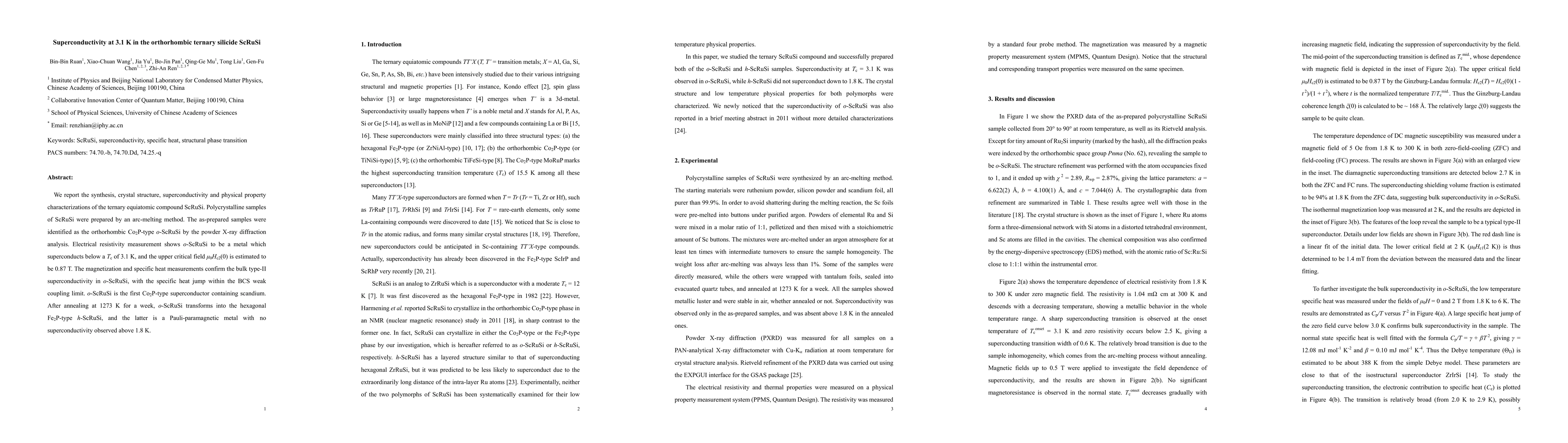 Researchers discovered a new superconductor, ScRuSi, with a critical temperature of 3.1 K, making it the first Co2P-type superconductor containing scandium. The material transforms into a Pauli-paramagnetic metal at higher temperatures.