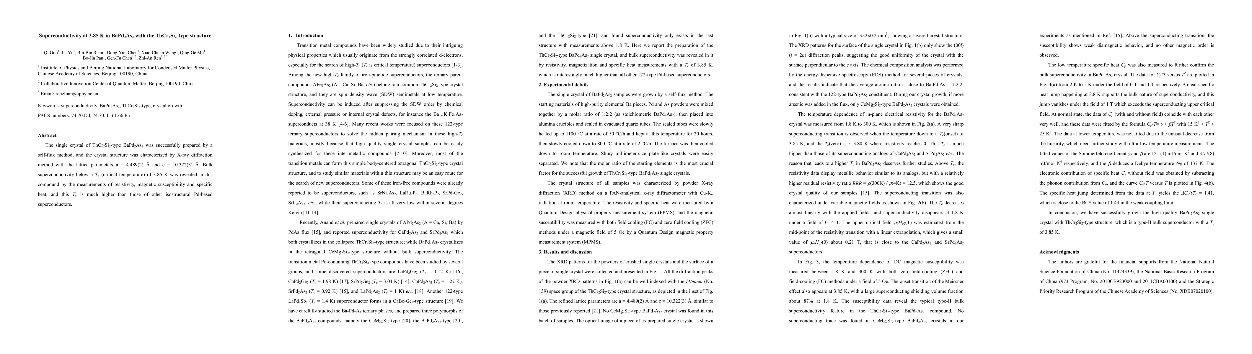 This paper reports the discovery of superconductivity at 3.85 K in BaPd2As2, a ThCr2Si2-type compound synthesized via a self-flux method. The crystal structure was confirmed by X-ray diffraction, and the critical temperature exceeds those of other similar Pd-based superconductors.