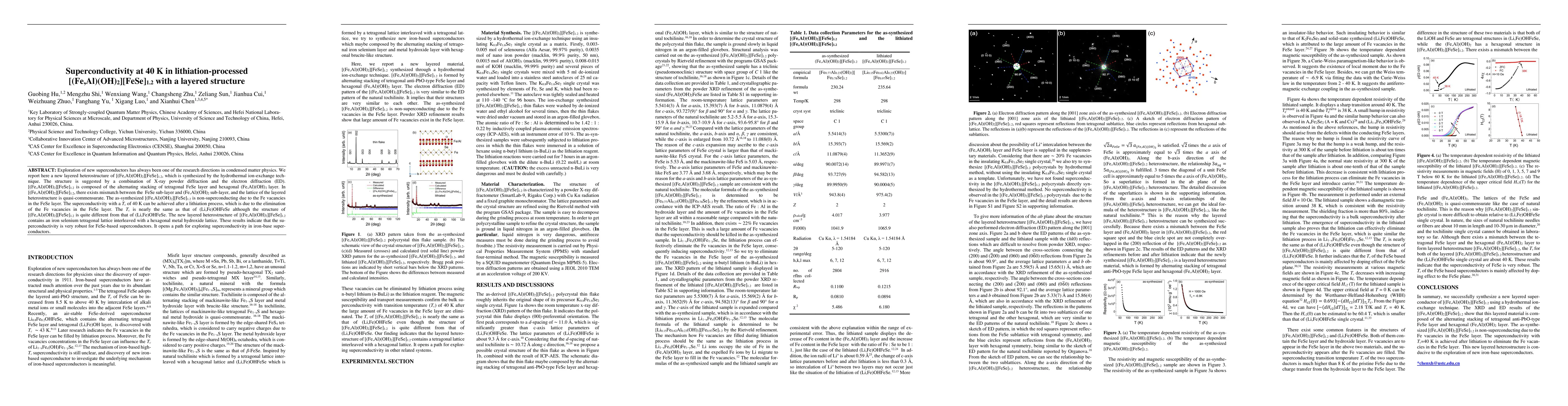 Researchers discovered a new superconductor at 40K in lithiation-processed [(Fe,Al)(OH)2][FeSe]1.2, a layered heterostructure. This material, synthesized via hydrothermal ion-exchange, shows superconductivity after lithium treatment, eliminating Fe vacancies in the FeSe layer. Despite structural differences from (Li,Fe)OHFeSe, both exhibit similar high Tc, indicating robust superconductivity in FeSe-based compounds.