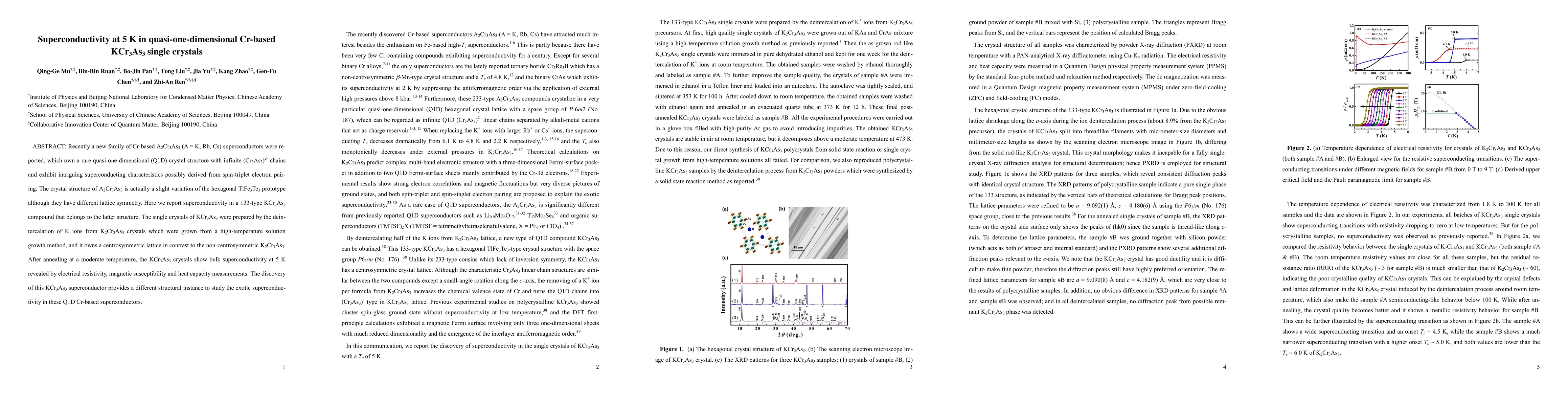 Researchers discovered superconductivity in a single crystal of KCr3As3 at 5 K, providing a new structural instance to study exotic superconductivity in quasi-one-dimensional Cr-based compounds.