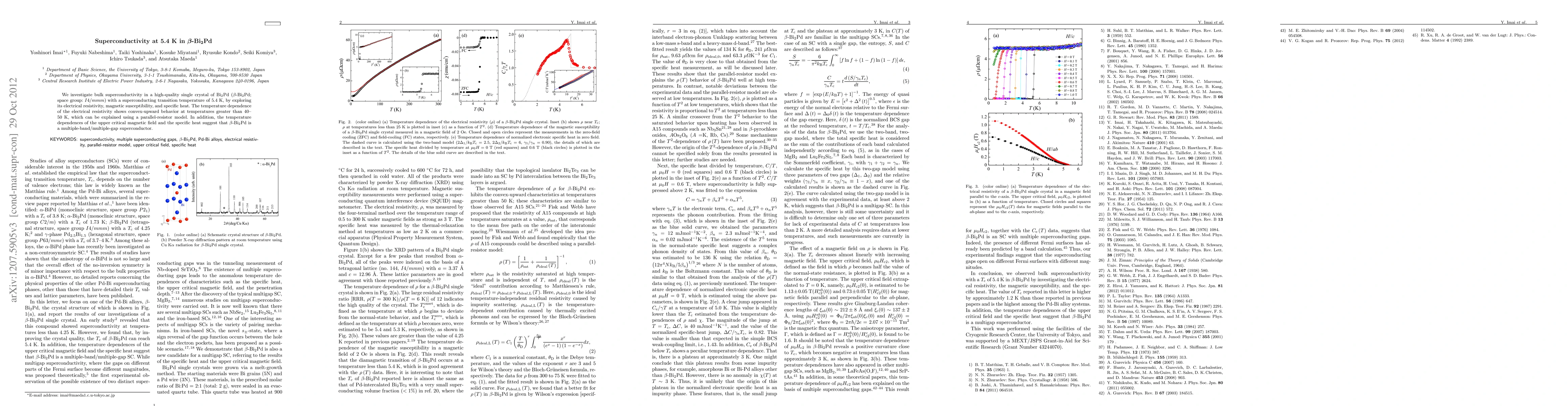 Researchers discovered superconductivity in $\beta$-Bi$_2$Pd at 5.4 K, confirmed through electrical resistivity, magnetic susceptibility, and specific heat measurements. The material exhibits multiple bands and gaps, suggesting complex superconducting behavior.