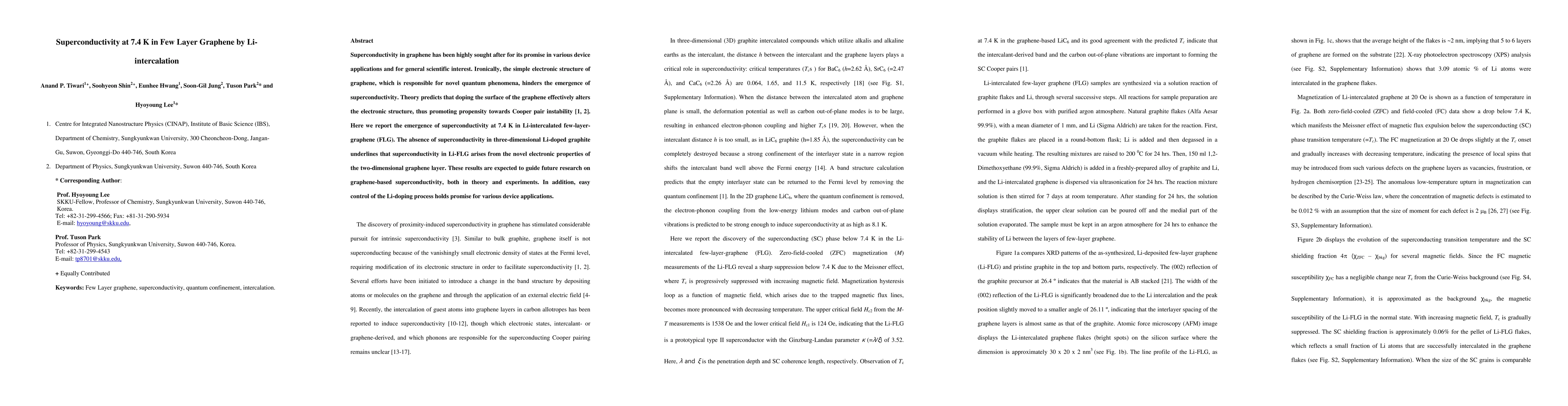 This paper reports the emergence of superconductivity at 7.4 K in Li-intercalated few-layer graphene, demonstrating that doping alters graphene's electronic structure to promote Cooper pair instability, with implications for future graphene-based superconductor research and device applications.