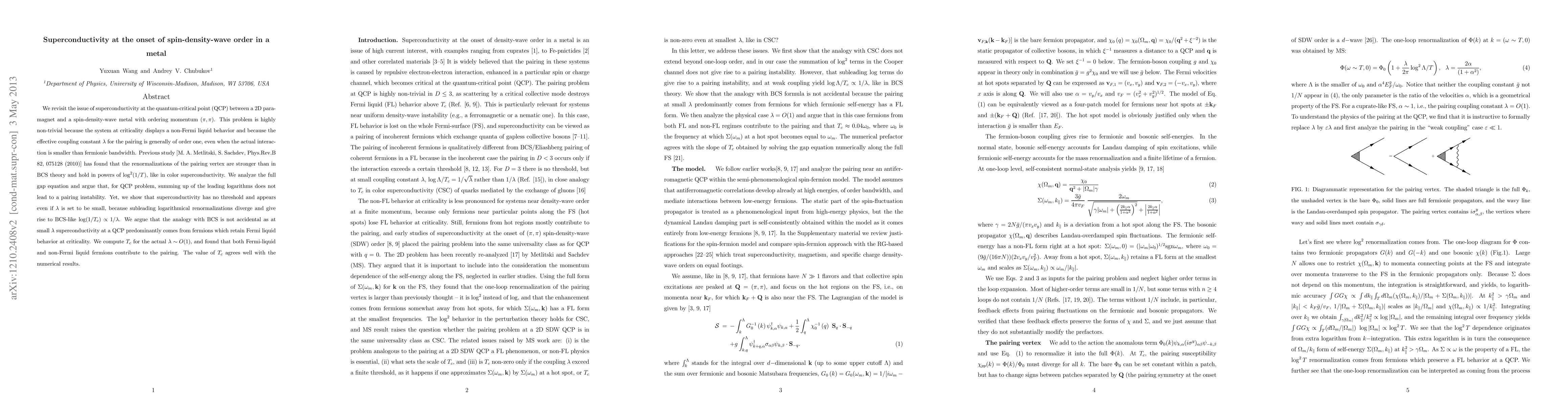 We revisit the issue of superconductivity at the quantum-critical point (QCP) between a 2D paramagnet and a spin-density-wave metal with ordering momentum (\pi,\pi). This problem is highly non-trivial because the system at criticality displays a non-Fermi liquid behavior and because the effective coupling constant \lambda for the pairing is generally of order one, even when the actual interaction is smaller than fermionic bandwidth. Previous study [M. A. Metlitski, S. Sachdev, Phys.Rev.B 82, 075128 (2010)] has found that the renormalizations of the pairing vertex are stronger than in BCS theory and hold in powers of \log^2 (1/T), like in color superconductivity. We analyze the full gap equation and argue that, for QCP problem, summing up of the leading logarithms does not lead to a pairing instability. Yet, we show that superconductivity has no threshold and appears even if the coupling is set to be small, because subleading logarithmical renormalizations diverge and give rise to BCS-like \log(1/T_c) \propto 1/\lambda. We argue that the analogy with BCS is not accidental as at small coupling superconductivity at a QCP predominantly comes from fermions which retain Fermi liquid behavior at criticality. We computed T_c for the actual \lambda \sim 1, and found that both Fermi-liquid and non-Fermi liquid fermions contribute to the pairing. The value of T_c agrees well with the numerical results.