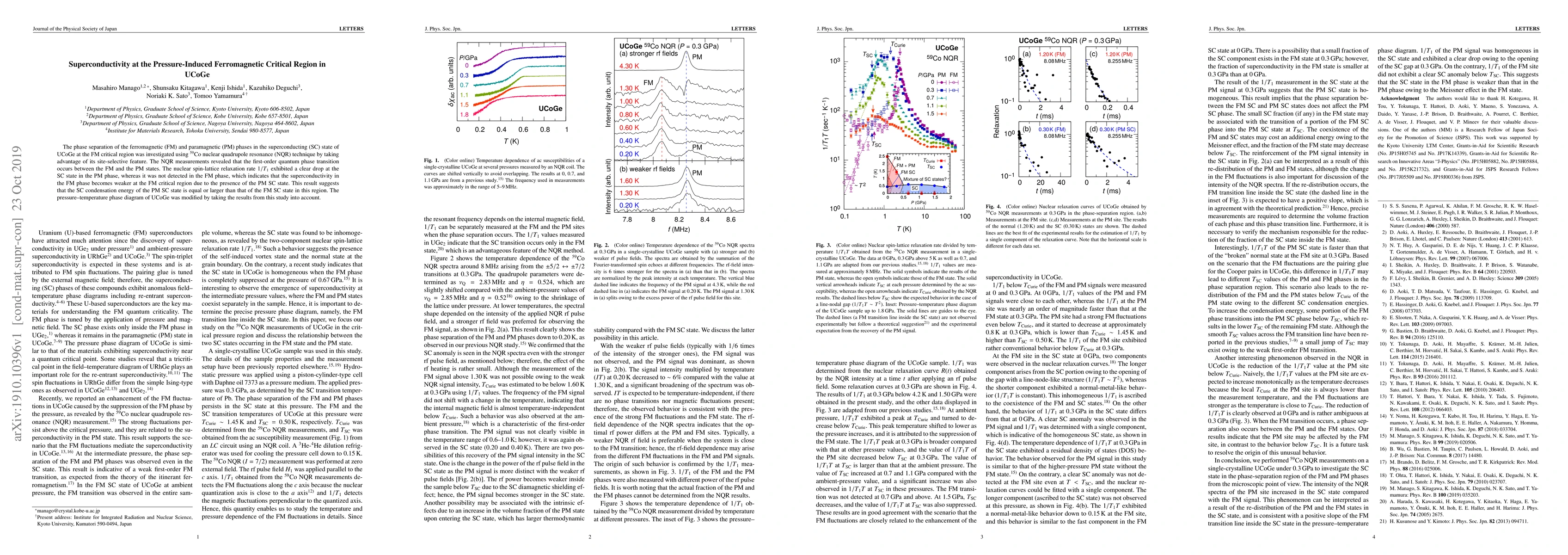 This study investigates the coexistence of superconductivity and ferromagnetism in UCoGe using $^{59}$Co NQR, revealing a first-order quantum phase transition between ferromagnetic and paramagnetic states. The findings suggest that superconductivity weakens near the ferromagnetic critical region due to the presence of a competing paramagnetic superconducting state.