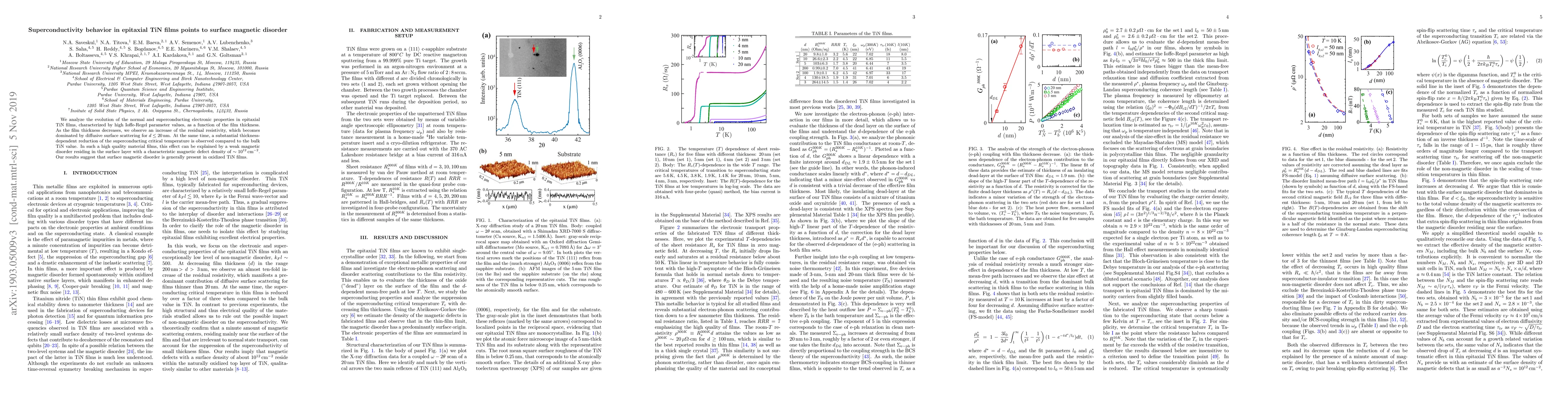 This study investigates the superconductivity in epitaxial TiN films, revealing that reduced film thickness leads to increased residual resistivity due to surface scattering. The superconducting critical temperature decreases significantly, attributed to surface magnetic disorder with a defect density of approximately $10^{12}\,\mathrm{cm}^{-2}$.