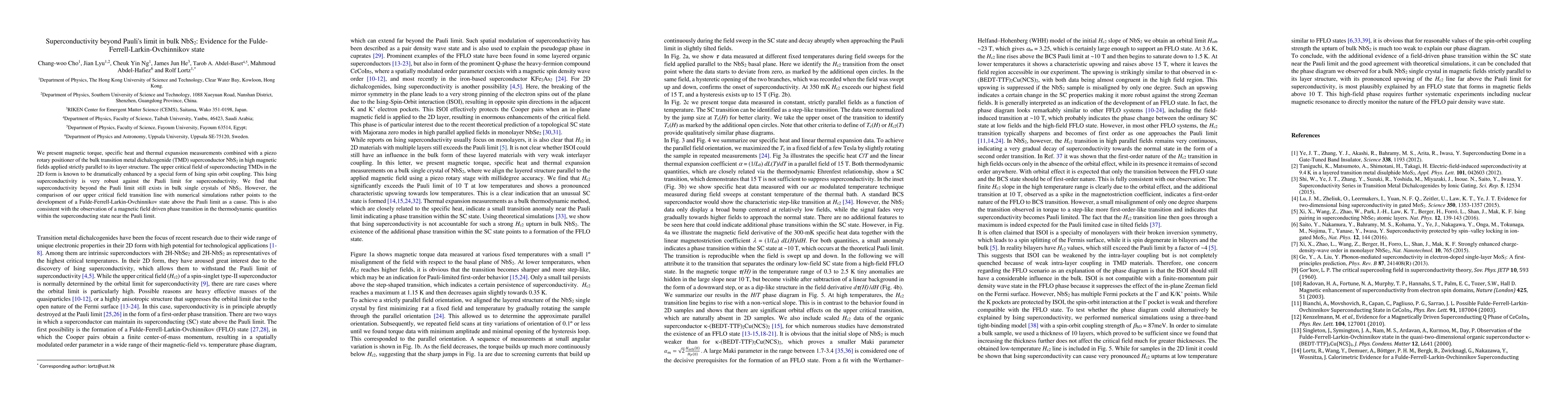 This study reveals that bulk NbS2 superconductors exhibit superconductivity beyond Pauli's limit, suggesting the presence of a Fulde-Ferrell-Larkin-Ovchinnikov state, supported by magnetic torque, specific heat, and thermal expansion measurements in high magnetic fields. The findings indicate a robust Ising-type superconductivity in NbS2, challenging conventional superconductivity limits.