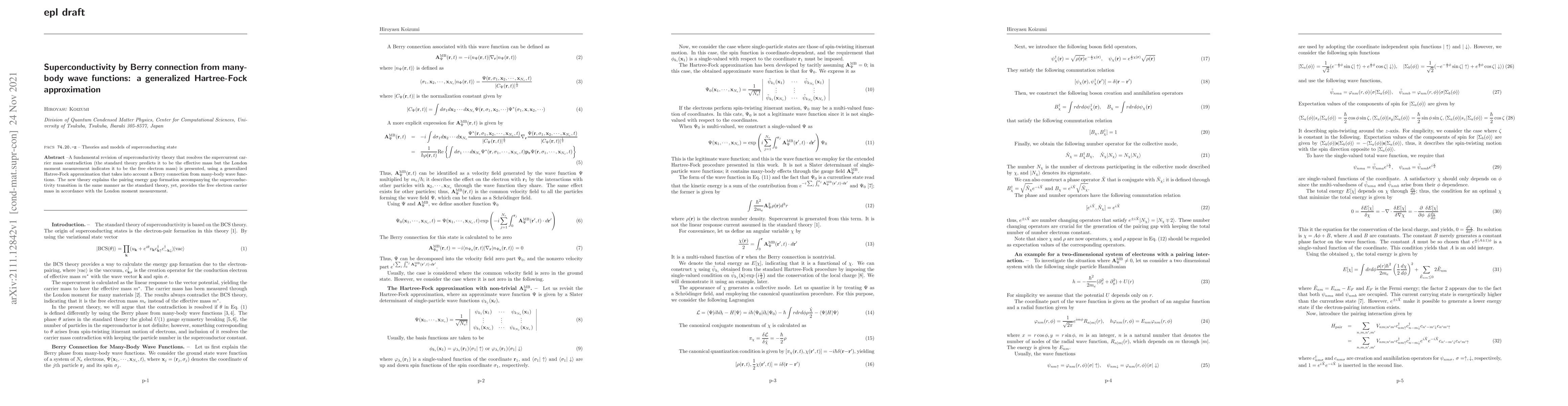 This paper proposes a revised superconductivity theory using a generalized Hartree-Fock approximation that incorporates a Berry connection from many-body wave functions, resolving the discrepancy between predicted and measured supercurrent carrier mass. It maintains the standard theory's pairing energy gap explanation while aligning with London moment measurements.