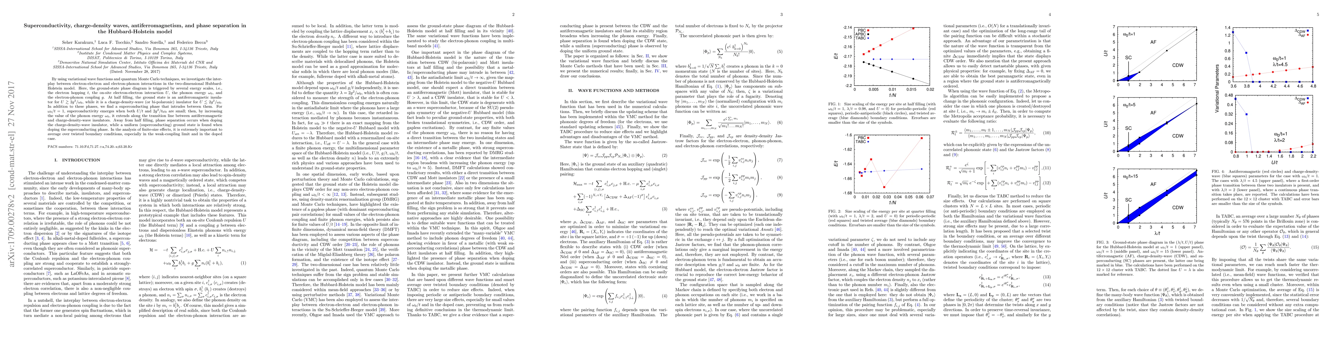 This paper explores the complex interplay between electron-electron and electron-phonon interactions in the Hubbard-Holstein model using variational wave functions and quantum Monte Carlo techniques. It reveals a rich ground-state phase diagram featuring antiferromagnetism, charge-density waves, superconductivity, and phase separation, influenced by various energy scales and doping levels.