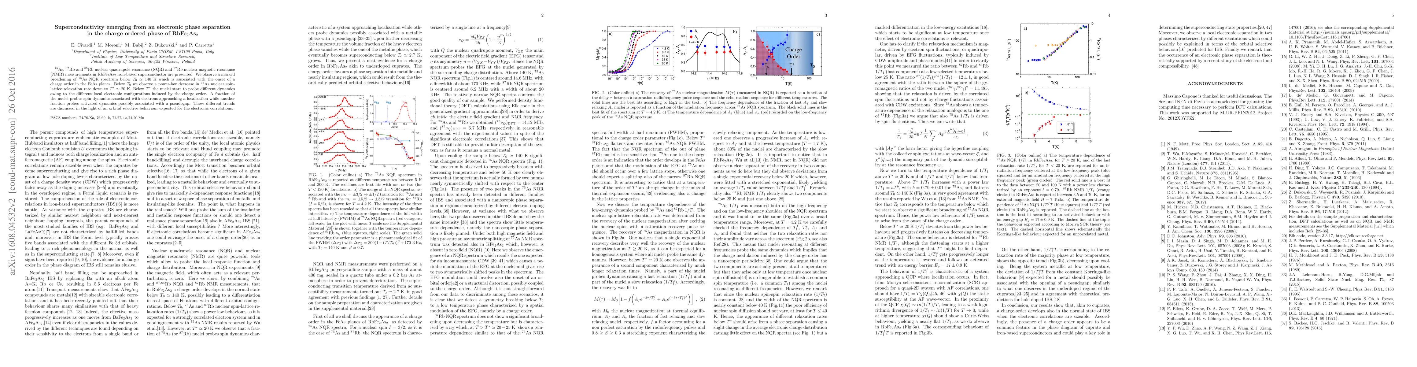This paper reports on the emergence of superconductivity in RbFe$_2$As$_2$ linked to electronic phase separation in its charge-ordered phase, as observed through nuclear quadrupole and magnetic resonance measurements. The findings suggest that different local electronic configurations induce distinct spin dynamics, hinting at orbital selective behavior.