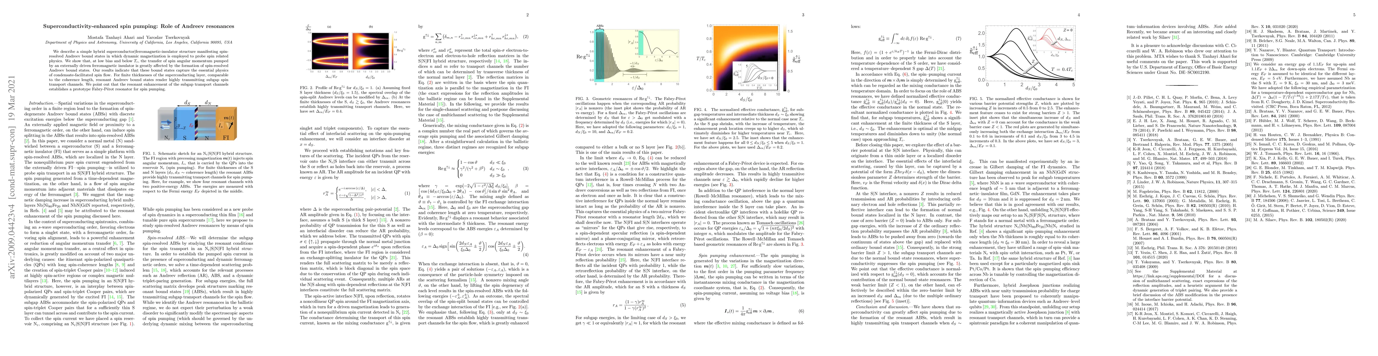 We describe a simple hybrid superconductor$|$ferromagnetic-insulator structure manifesting spin-resolved Andreev bound states in which dynamic magnetization is employed to probe spin related physics. We show that, at low bias and below $T_c$, the transfer of spin angular momentum pumped by an externally driven ferromagnetic insulator is greatly affected by the formation of spin-resolved Andreev bound states. Our results indicate that these bound states capture the essential physics of condensate-facilitated spin flow. For finite thicknesses of the superconducting layer, comparable to the coherence length, resonant Andreev bound states render highly transmitting subgap spin transport channels. We point out that the resonant enhancement of the subgap transport channels establishes a prototype Fabry-P\'erot resonator for spin pumping.