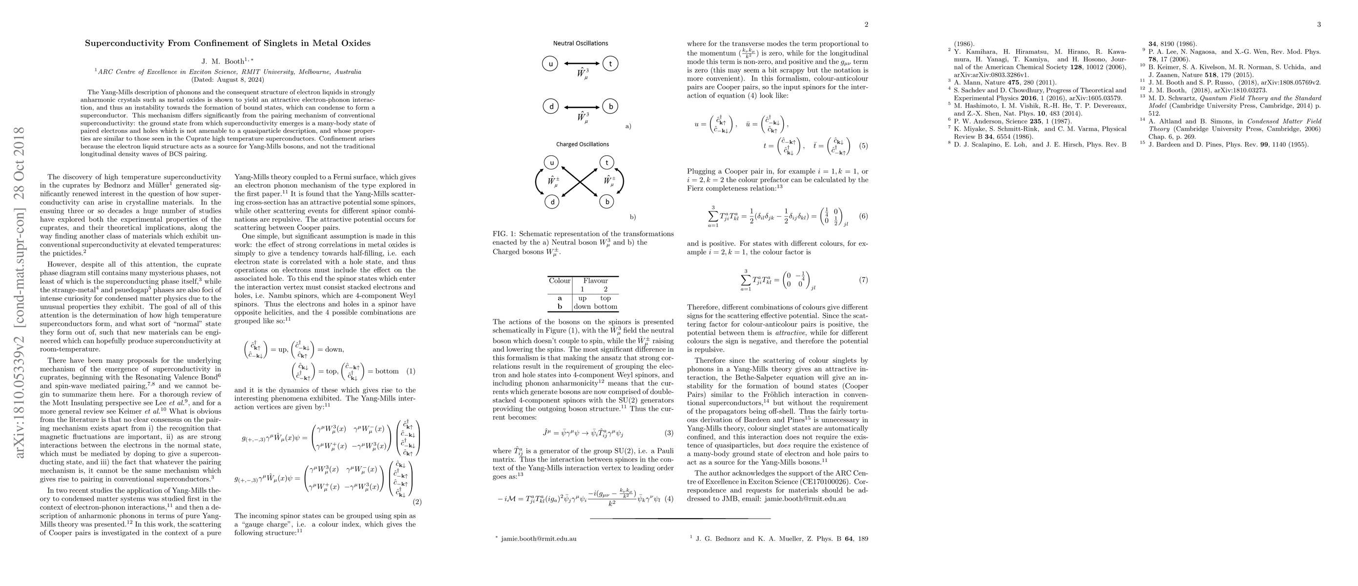 This paper proposes a novel mechanism for superconductivity in metal oxides based on the confinement of singlets through Yang-Mills interactions, leading to attractive electron-phonon coupling and the formation of bound states. Unlike conventional BCS pairing, this mechanism involves a many-body state of paired electrons and holes, akin to the pairing in Cuprate superconductors.
