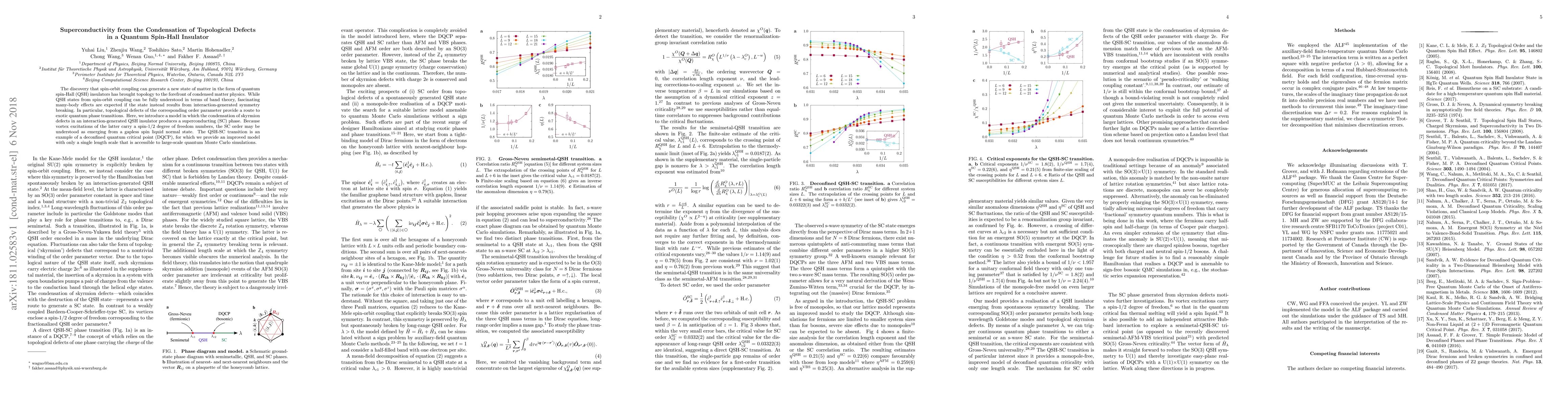 This research introduces a model where condensation of topological defects, specifically skyrmions, in an interaction-generated quantum spin-Hall insulator can lead to superconductivity. It proposes a deconfined quantum critical point (DQCP) as the transition, with implications for understanding exotic quantum phase transitions and being accessible to large-scale quantum Monte Carlo simulations.