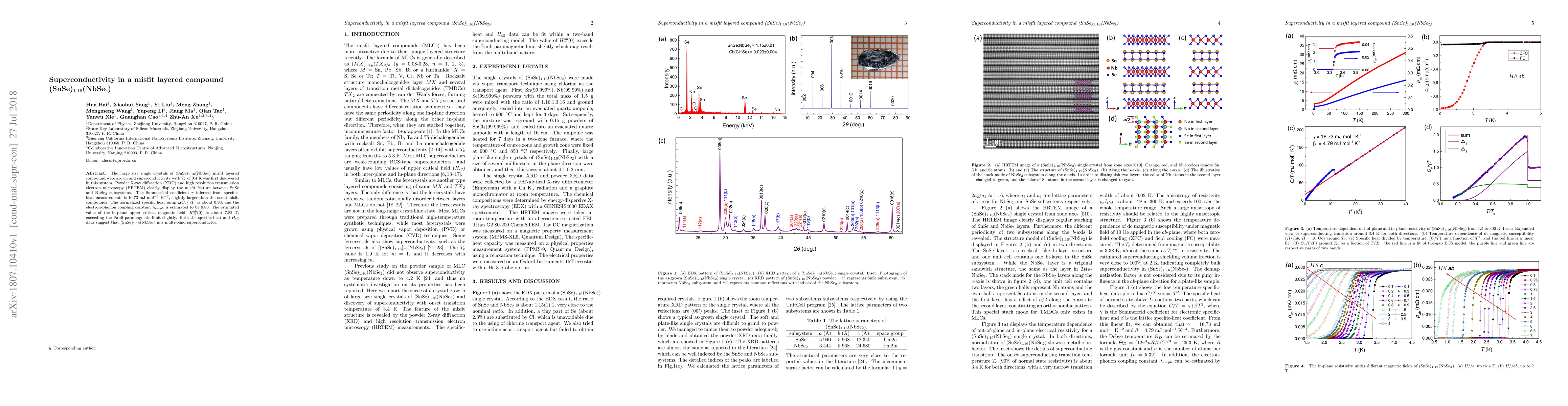 This paper reports the discovery of superconductivity at 3.4 K in the misfit layered compound (SnSe)$_{1.16}$(NbSe$_2$), characterized by a multi-band nature and an electron-phonon coupling constant of 0.80, with an in-plane upper critical magnetic field exceeding the Pauli paramagnetic limit.