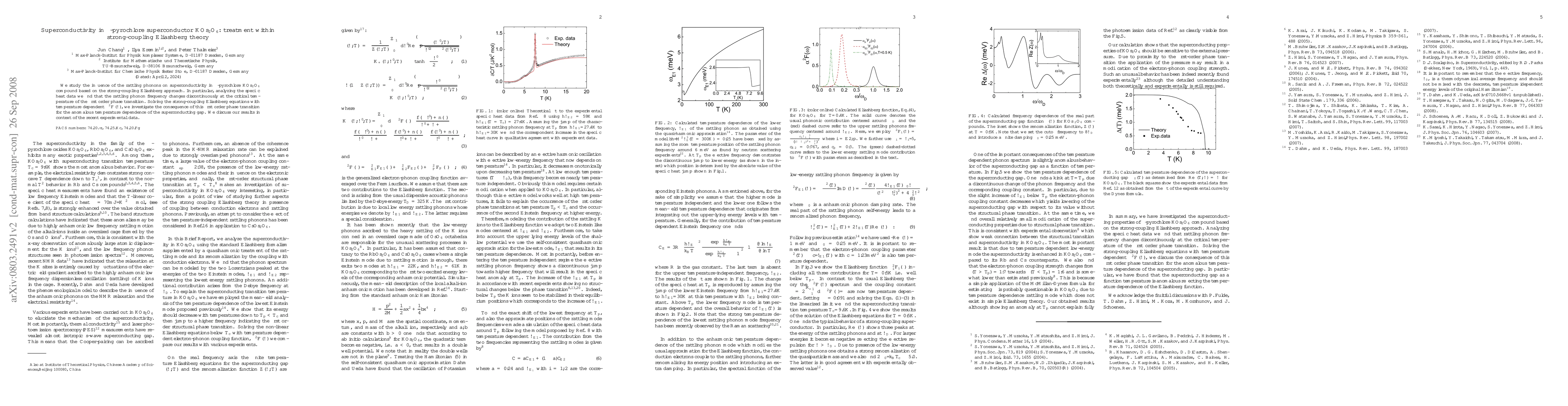 We study the influence of the rattling phonons on superconductivity in $\beta$-pyrochlore KOs$_{2}$O$_{6}$ compound based on the strong-coupling Eliashberg approach. In particular, analyzing the specific heat data we find that the rattling phonon frequency changes discontinuously at the critical temperature of the first order phase transition. Solving the strong-coupling Eliashberg equations with temperature dependent $\alpha^{2}F(\omega)$, we investigate the consequence of this first order phase transition for the anomalous temperature dependence of the superconducting gap. We discuss our results in context of the recent experimental data.