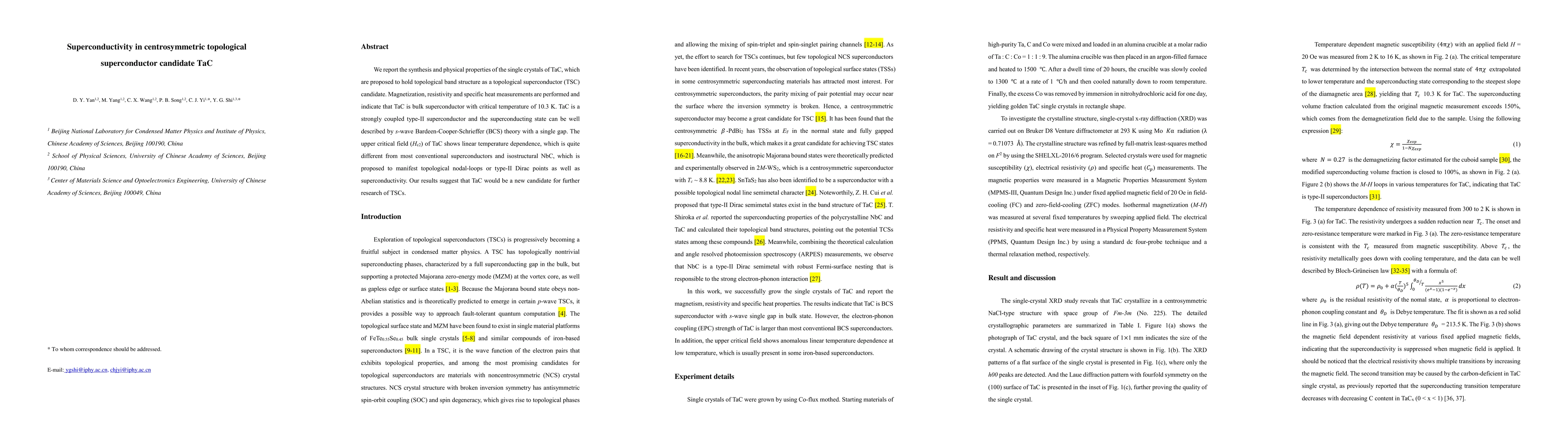 This paper reports the synthesis of TaC single crystals, proposing them as a topological superconductor candidate. Measurements reveal TaC as a bulk superconductor with a critical temperature of 10.3 K, exhibiting s-wave BCS theory and a unique linear upper critical field dependence, distinguishing it from conventional superconductors and suggesting potential for further topological superconductivity research.