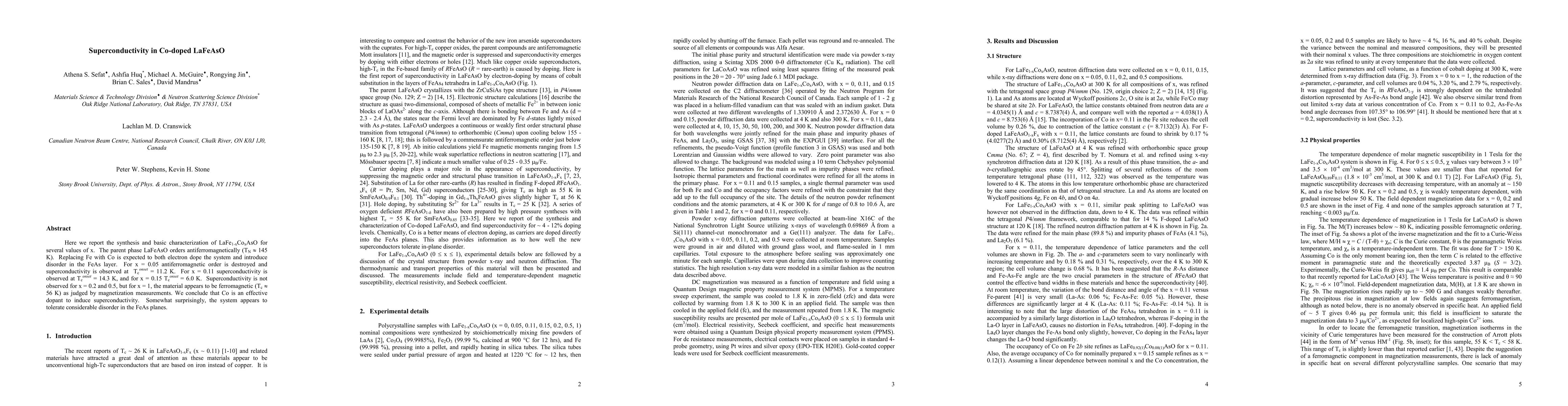 This study synthesizes and characterizes LaFe1-xCoxAsO for various Co concentrations, finding that moderate Co doping induces superconductivity while disrupting antiferromagnetic order in LaFeAsO. Superconductivity peaks at Tc(onset) = 14.3 K for x = 0.11, though it disappears for higher Co content, indicating a tolerance to disorder within limits.