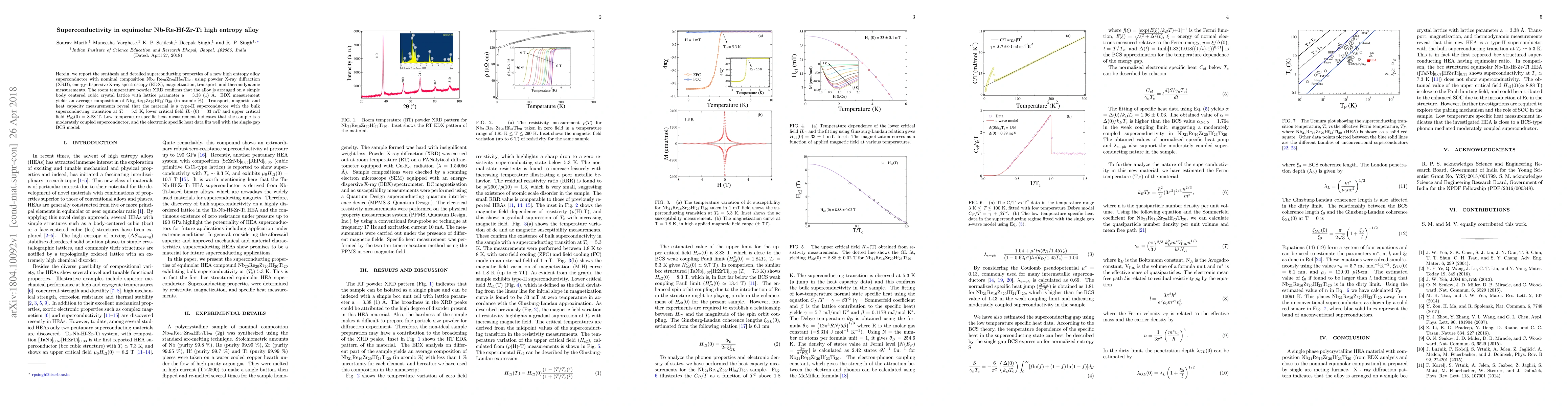 This study synthesizes and investigates the superconducting properties of a high entropy alloy Nb$_{20}$Re$_{20}$Zr$_{20}$Hf$_{20}$Ti$_{20}$, finding it to be a type-II superconductor with a critical temperature $T_{c}$ of 5.3 K, characterized by a simple body centered cubic structure.