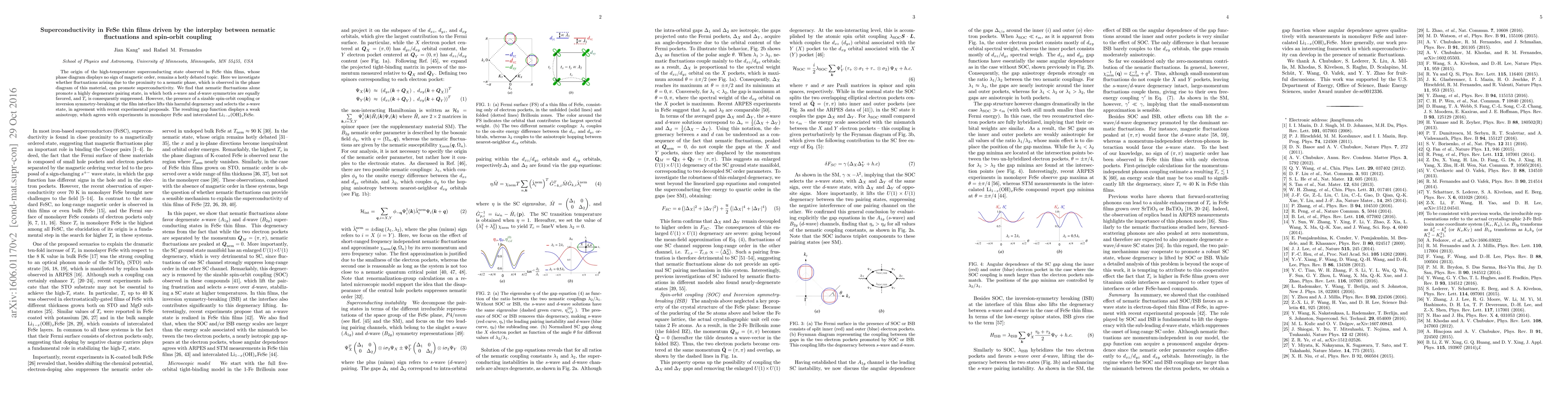This study explores how nematic fluctuations in FeSe thin films can drive superconductivity, finding that while they initially promote a degenerate pairing state, spin-orbit coupling at the film interface selects an $s$-wave superconducting state, aligning with experimental observations.