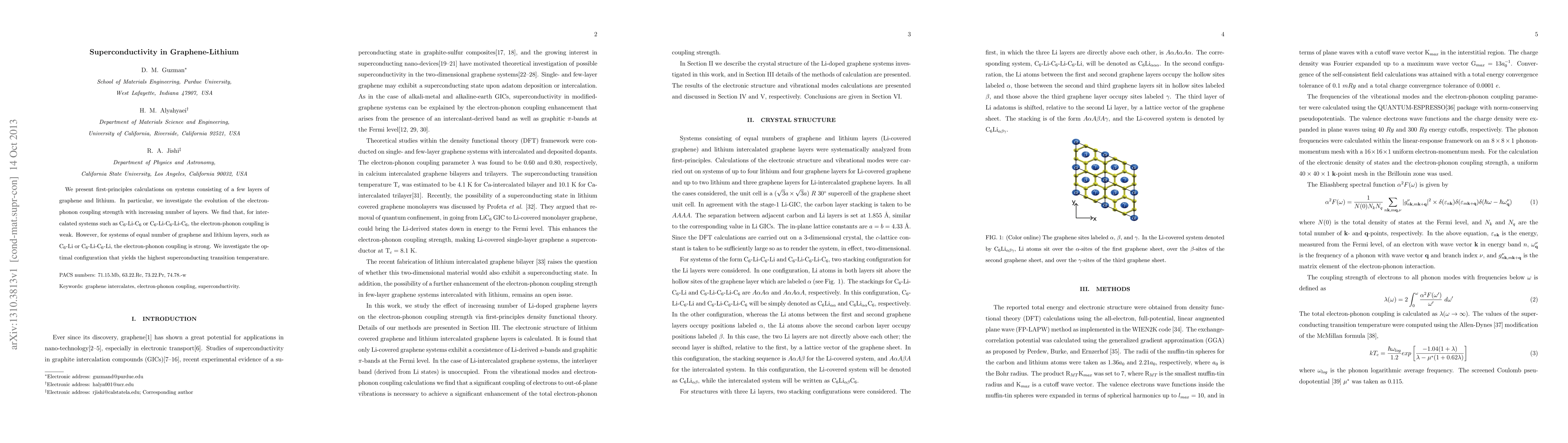 We present first-principles calculations on systems consisting of a few layers of graphene and lithium. In particular, we investigate the evolution of the electron-phonon coupling strength with increasing number of layers. We find that, for intercalated systems such as C6-Li-C6 or C6-Li-C6-Li-C6, the electron-phonon coupling is weak. However, for systems of equal number of graphene and lithium layers, such as C6-Li or C6-Li-C6-Li, the electron-phonon coupling is strong. We investigate the optimal configuration that yields the highest superconducting transition temperature.