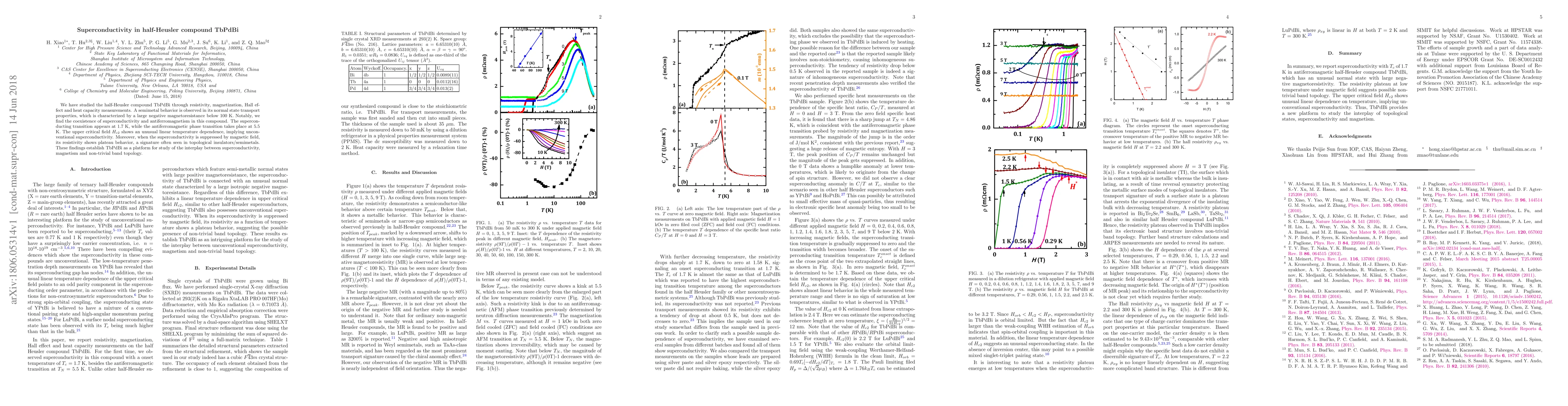 TbPdBi exhibits superconductivity at 1.7 K and antiferromagnetism at 5.5 K, with an unusual linear temperature dependence of the upper critical field, suggesting unconventional superconductivity and potential topological properties.
