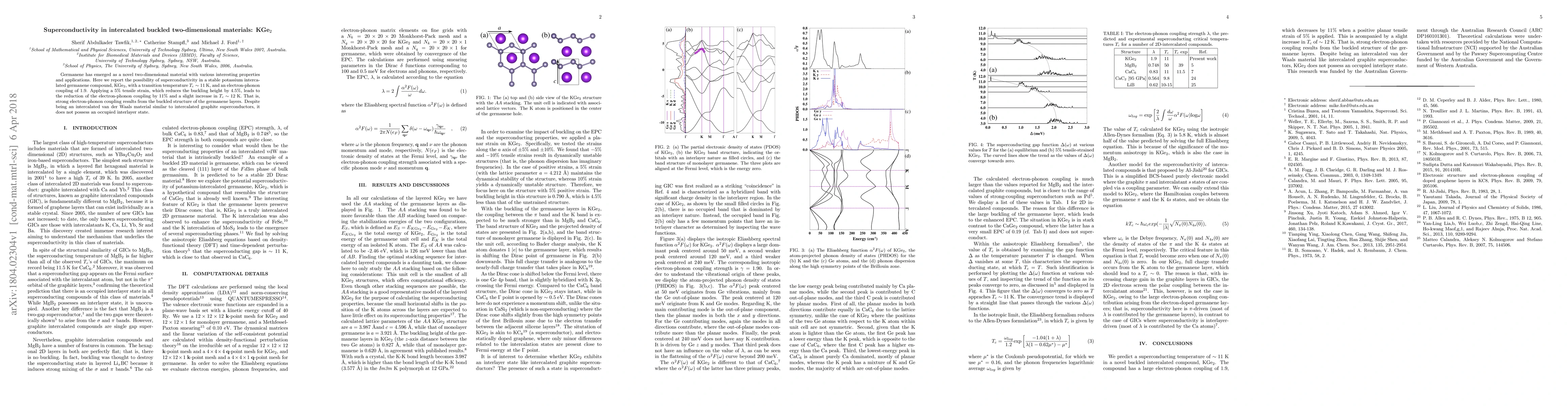 This study reveals superconductivity in potassium-intercalated germanene, KGe$_2$, with a transition temperature of 11 K. Superconductivity is enhanced to 12 K under a 5% tensile strain that reduces buckling, suggesting strong electron-phonon coupling is due to the material's buckled structure.
