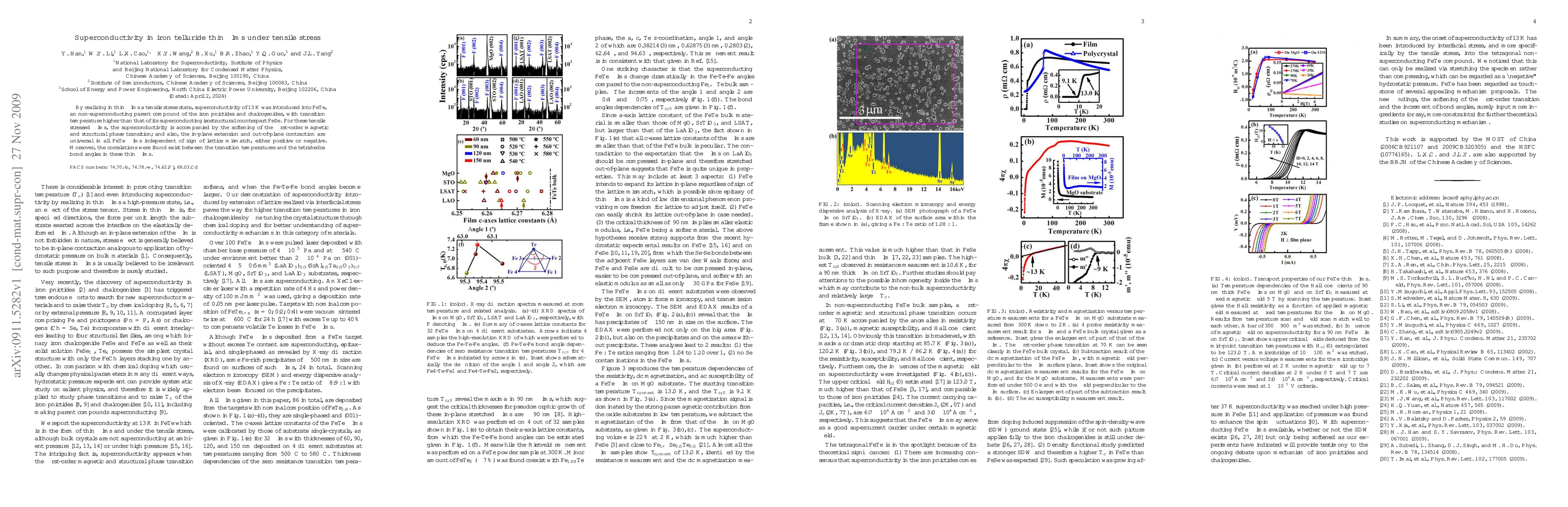 This study demonstrates that applying tensile stress to iron telluride thin films induces superconductivity at a transition temperature of 13 K, surpassing that of its superconducting counterpart FeSe. The induced superconductivity correlates with the softening of magnetic and structural phase transitions and is consistent across films with different lattice mismatches.