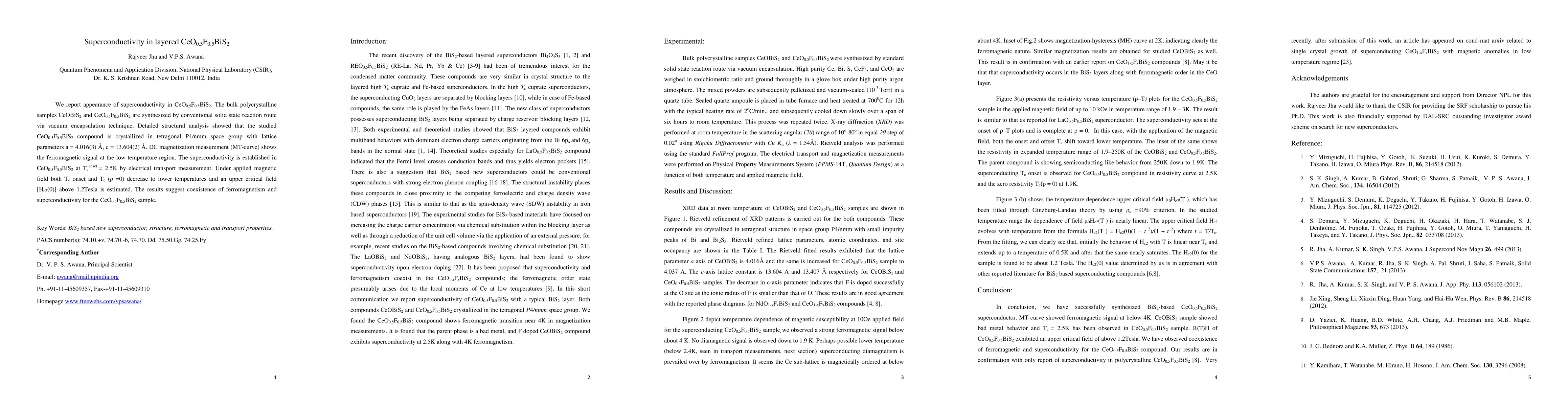 This paper reports the discovery of superconductivity in CeO0.5F0.5BiS2 at a critical temperature of 2.5K, alongside a ferromagnetic signal observed in DC magnetization measurements. The coexistence of ferromagnetism and superconductivity in this compound is suggested.