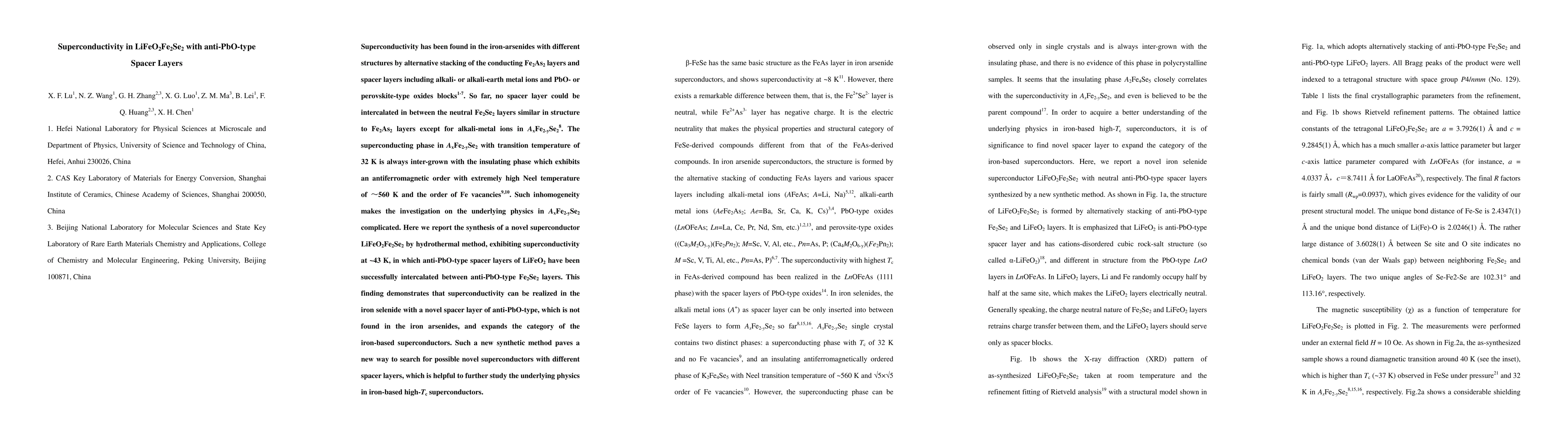 Researchers discovered a new iron selenide superconductor LiFeO2Fe2Se2 with anti-PbO-type spacer layers, achieving superconductivity at 43K, expanding the category of iron-based high-Tc superconductors.