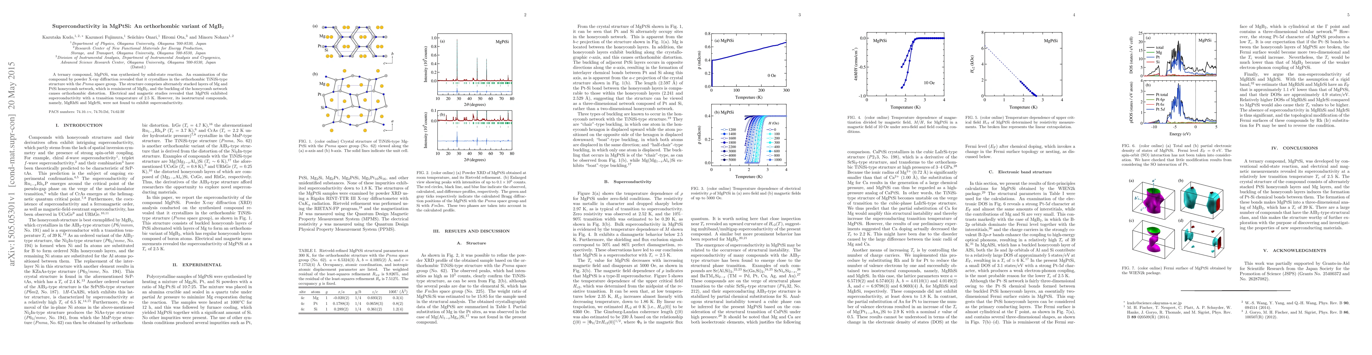 A ternary compound, MgPtSi, was synthesized by solid-state reaction. An examination of the compound by powder X-ray diffraction revealed that it crystallizes in the orthorhombic TiNiSi-type structure with the Pnma space group. The structure comprises alternately stacked layers of Mg and PtSi honeycomb network, which is reminiscent of MgB2, and the buckling of the honeycomb network causes orthorhombic distortion. Electrical and magnetic studies revealed that MgPtSi exhibited superconductivity with a transition temperature of 2.5 K. However, its isostructural compounds, namely, MgRhSi and MgIrSi, were not found to exhibit superconductivity.