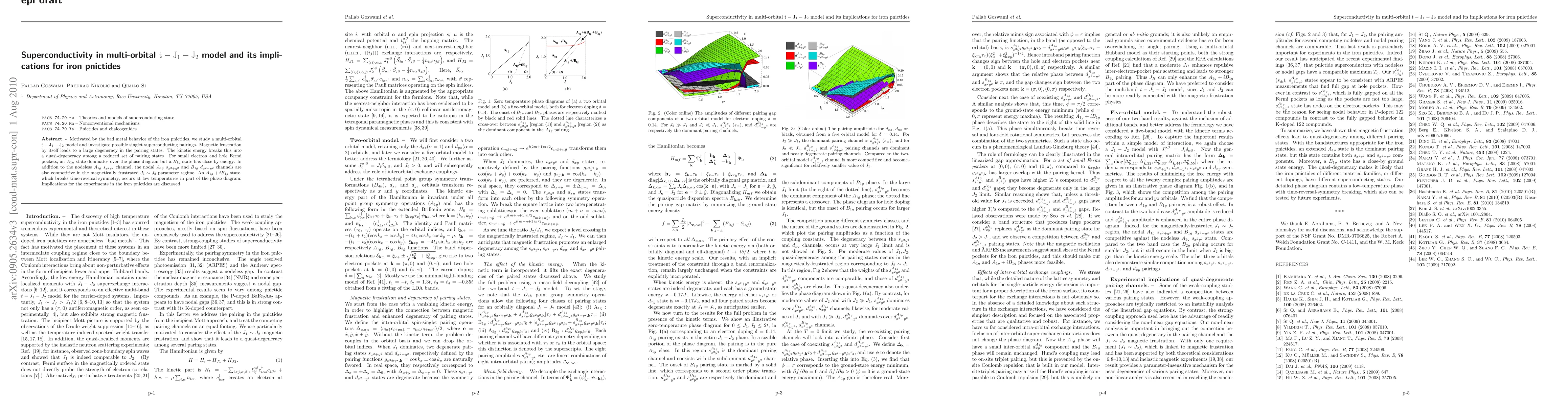 This paper explores the multi-orbital t-J1-J2 model to explain superconductivity in iron pnictides, finding that magnetic frustration leads to a variety of superconducting pairing states, with $A_{1g}$ and $B_{1g}$ channels being particularly significant. Implications for experimental observations in iron pnictides are also discussed.