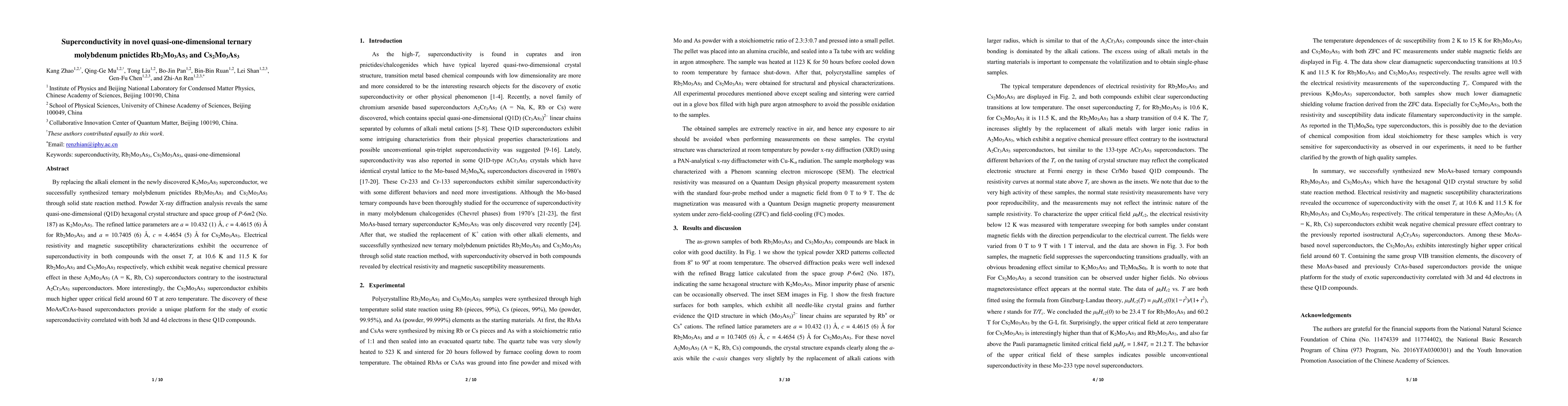 Researchers discovered two new superconducting compounds, Rb2Mo3As3 and Cs2Mo3As3, with unique properties, including a weak negative chemical pressure effect and high upper critical fields.
