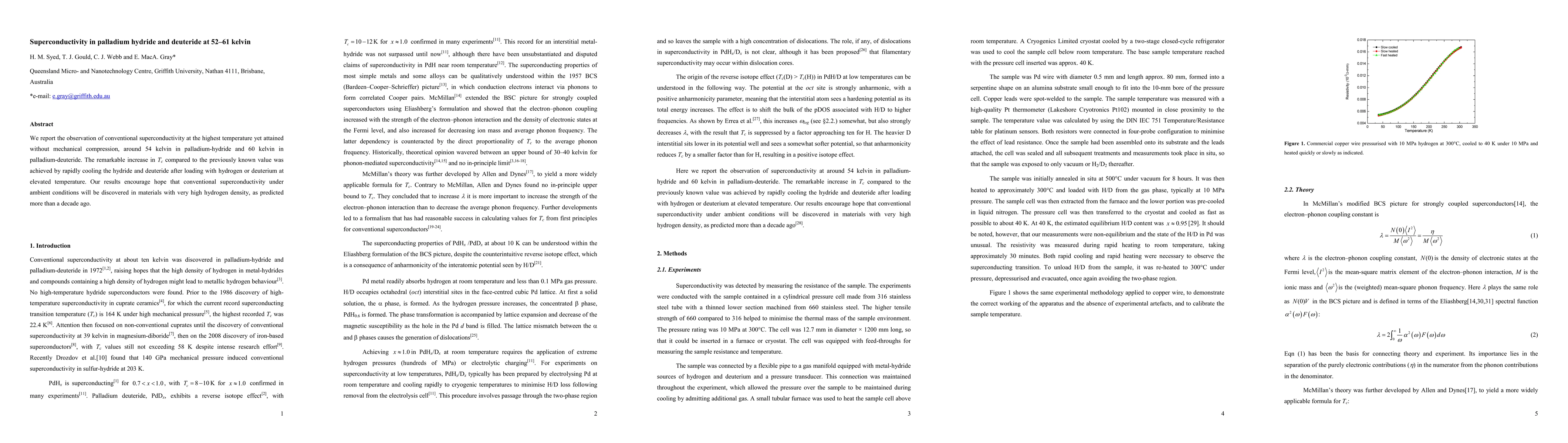 Scientists have discovered superconductivity in palladium hydride and deuteride at 54 kelvin and 60 kelvin, respectively, without mechanical compression, setting a new temperature record.
