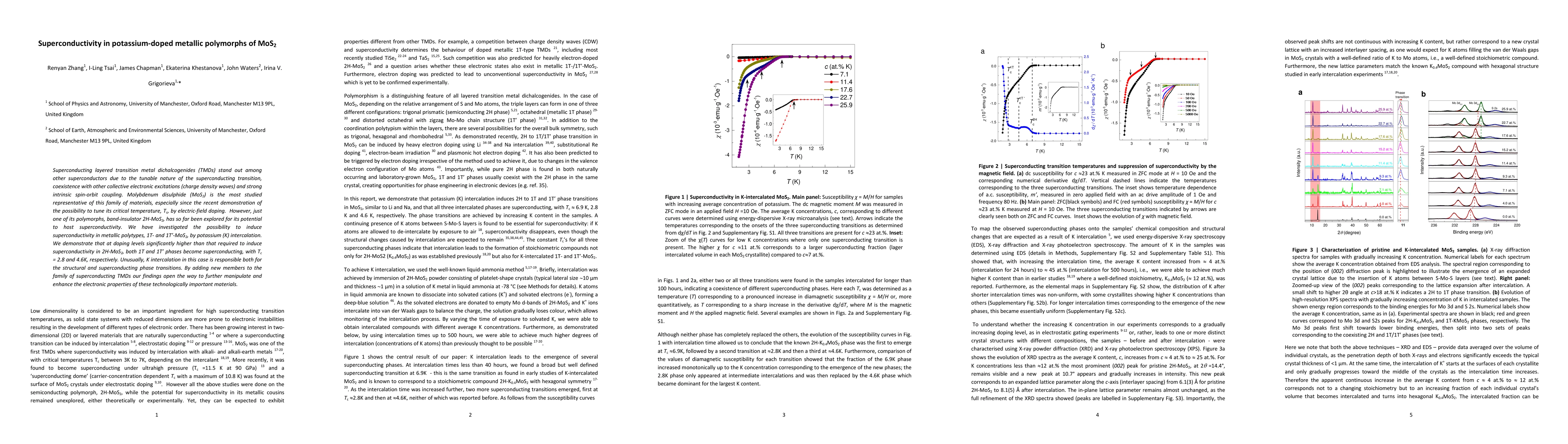 This paper investigates the induction of superconductivity in potassium-doped metallic polymorphs of MoS2, specifically 1T and 1T' phases, revealing critical temperatures of 2.8K and 4.6K, respectively. The study highlights the role of potassium intercalation in driving both structural and superconducting transitions, expanding the range of superconducting transition metal dichalcogenides.