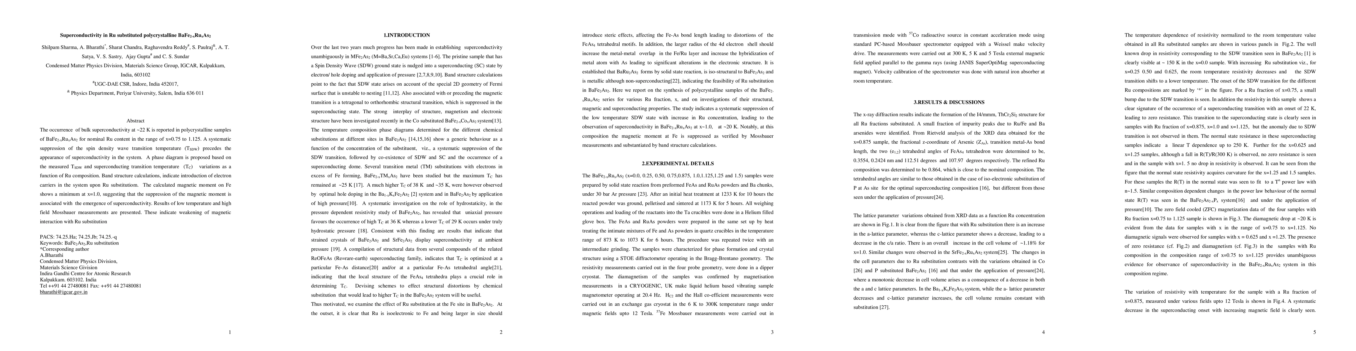 Researchers discovered superconductivity in a specific material with ruthenium substitution at temperatures up to 22 K, and found that suppressing the magnetic moment of iron is associated with its emergence.