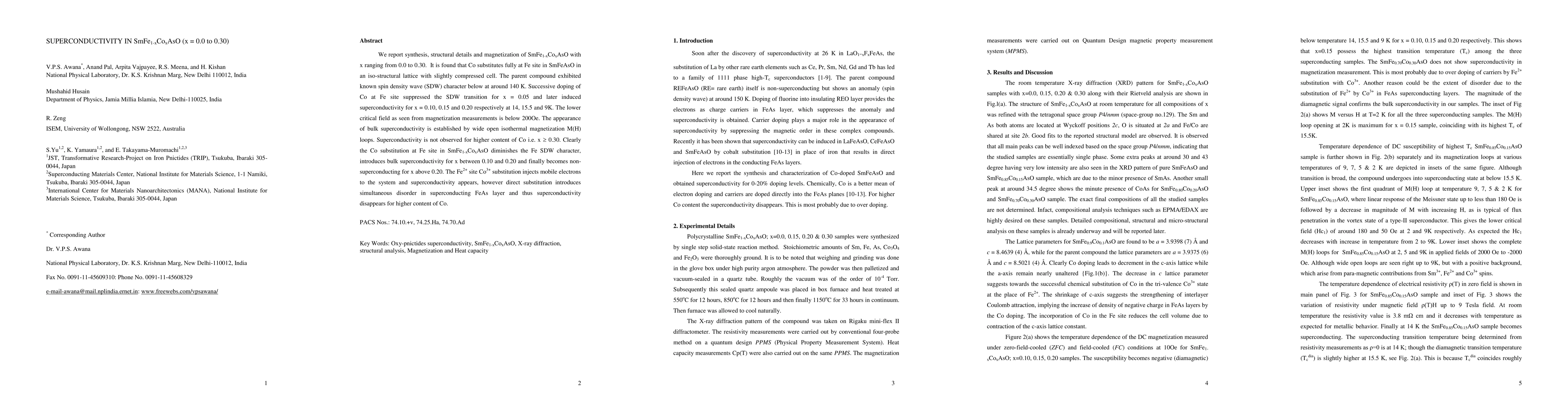This study investigates the impact of Co doping on the superconductivity of SmFe1-xCoxAsO (0.0 ≤ x ≤ 0.30). Co substitution at Fe sites induces superconductivity for x between 0.10 and 0.20, while higher Co content (x = 0.30) results in non-superconducting behavior.