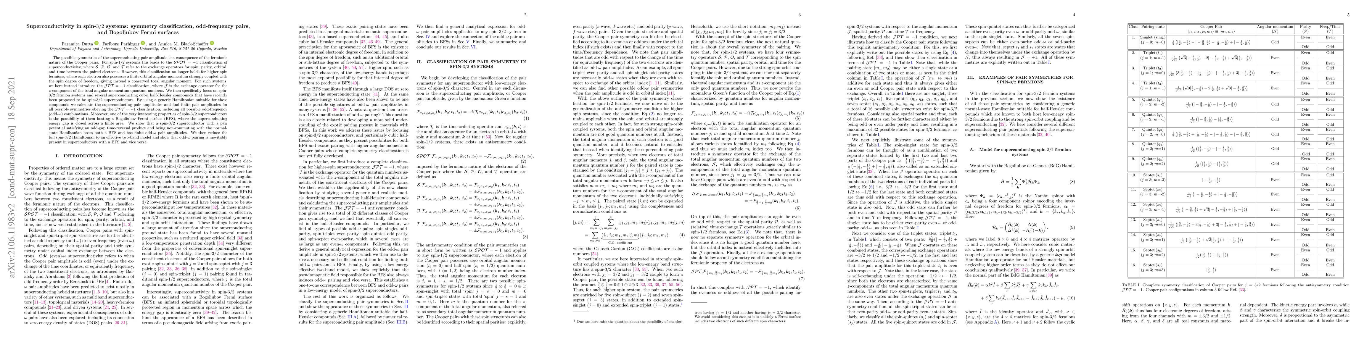 The possible symmetries of the superconducting pair amplitude is a consequence of the fermionic nature of the Cooper pairs. For spin-$1/2$ systems this leads to the $\mathcal{SPOT}=-1$ classification of superconductivity, where $\mathcal{S}$, $\mathcal{P}$, $\mathcal{O}$, and $\mathcal{T}$ refer to the exchange operators for spin, parity, orbital, and time between the paired electrons. However, this classification no longer holds for higher spin fermions, where each electron also possesses a finite orbital angular momentum strongly coupled with the spin degree of freedom, giving instead a conserved total angular moment. For such systems, we here instead introduce the $\mathcal{JPT}=-1$ classification, where $\mathcal{J}$ is the exchange operator for the $z$-component of the total angular momentum quantum numbers. We then specifically focus on spin-$3/2$ fermion systems and several superconducting cubic half-Heusler compounds that have recently been proposed to be spin-$3/2$ superconductors. By using a generic Hamiltonian suitable for these compounds we calculate the superconducting pair amplitudes and find finite pair amplitudes for all possible symmetries obeying the $\mathcal{JPT}=-1$ classification, including all possible odd-frequency (odd-$\omega$) combinations. Moreover, one of the very interesting properties of spin-$3/2$ superconductors is the possibility of them hosting a Bogoliubov Fermi surface (BFS), where the superconducting energy gap is closed across a finite area. We show that a spin-$3/2$ superconductor with a pair potential satisfying an odd-gap time-reversal product and being non-commuting with the normal-state Hamiltonian hosts both a BFS and has finite odd-$\omega$ pair amplitudes. We then reduce the full spin-$3/2$ Hamiltonian to an effective two-band model and show that odd-$\omega$ pairing is inevitably present in superconductors with a BFS and vice versa.