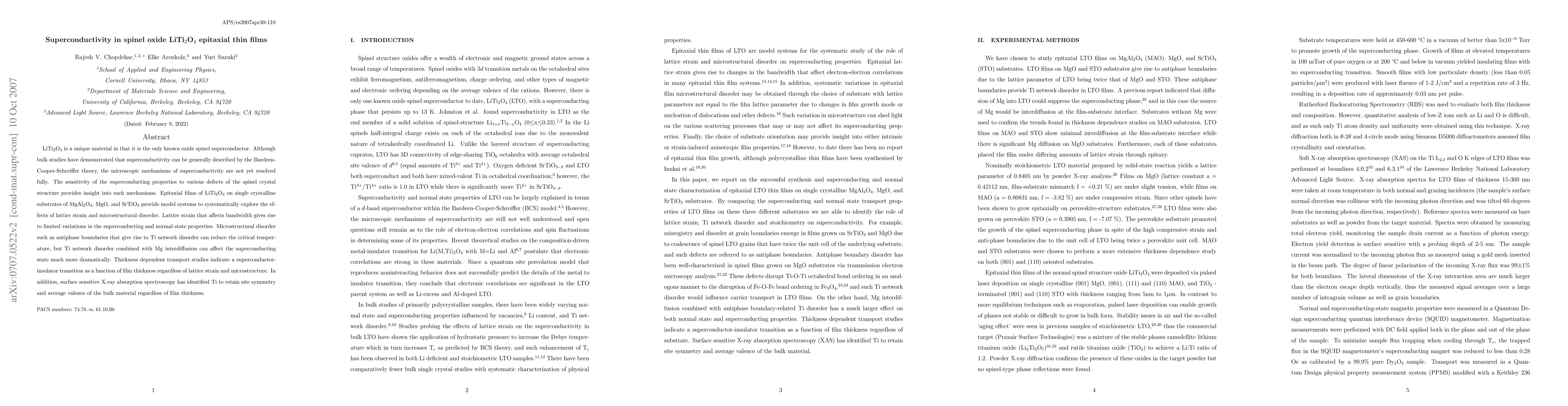 LiTi2O4 is a unique material in that it is the only known oxide spinel superconductor. Although bulk studies have demonstrated that superconductivity can be generally described by the Bardeen-Cooper-Schreiffer theory, the microscopic mechanisms of superconductivity are not yet resolved fully. The sensitivity of the superconducting properties to various defects of the spinel crystal structure provides insight into such mechanisms. Epitaxial films of LiTi2O4 on single crystalline substrates of MgAl2O4, MgO, and SrTiO3 provide model systems to systematically explore the effects of lattice strain and microstructural disorder. Lattice strain that affects bandwidth gives rise to limited variations in the superconducting and normal state properties. Microstructural disorder such as antiphase boundaries that give rise to Ti network disorder can reduce the critical temperature, but Ti network disorder combined with Mg interdiffusion can affect the superconducting state much more dramatically. Thickness dependent transport studies indicate a superconductor-insulator transition as a function of film thickness regardless of lattice strain and microstructure. In addition, surface sensitive X-ray absorption spectroscopy has identified Ti to retain site symmetry and average valence of the bulk material regardless of film thickness.
