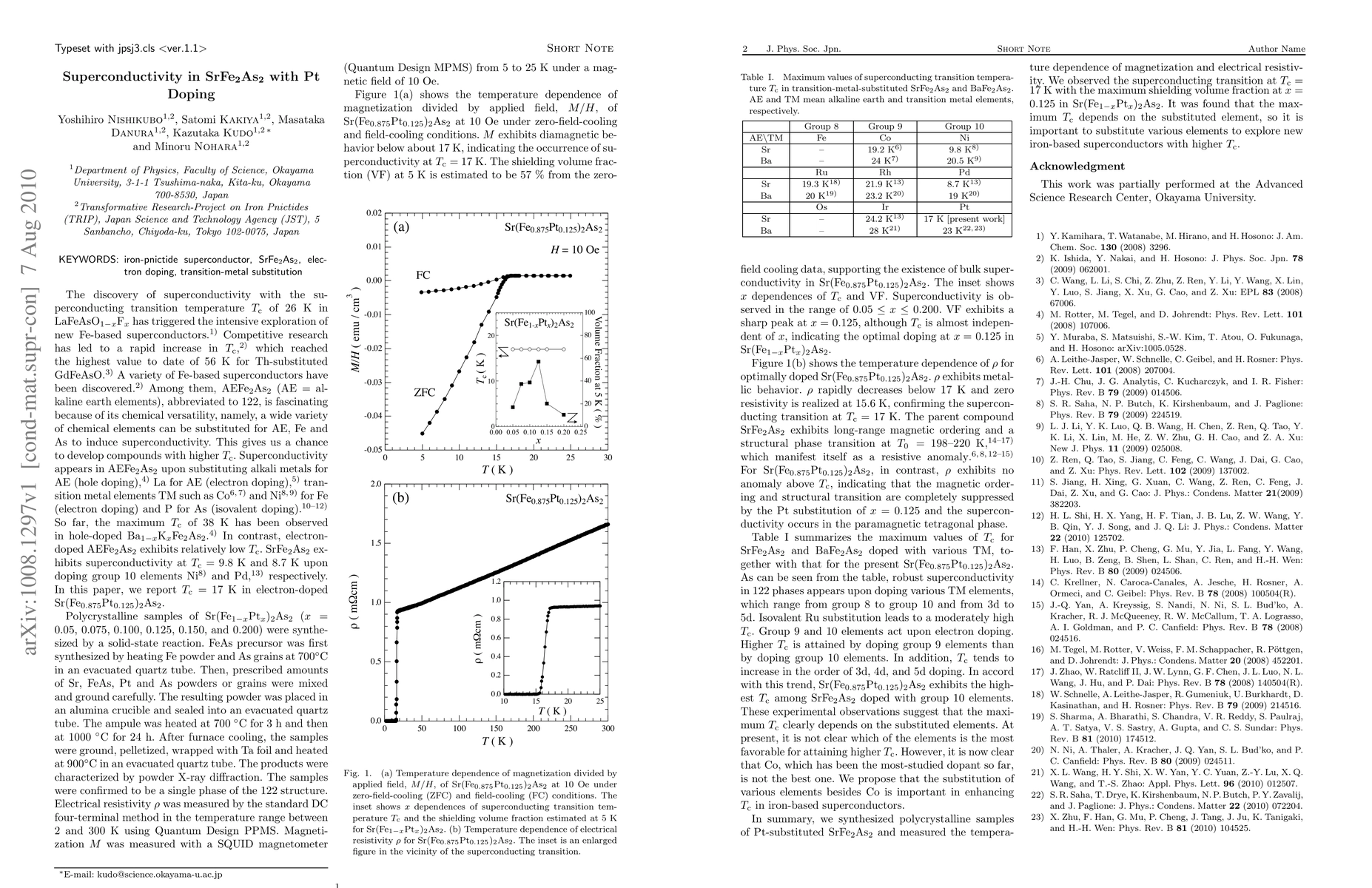 We have synthesized polycrystalline samples of Pt-substituted SrFe2As2 and measured the temperature dependence of magnetization and electrical resistivity. We have observed the superconducting transition at Tc = 17 K with the maximum shielding volume fraction at x = 0.125 in Sr(Fe1-xPtx)2As2. It is found that the maximum Tc depends on the substituted element, so it is important to substitute various elements to explore new iron-based superconductors with higher Tc.