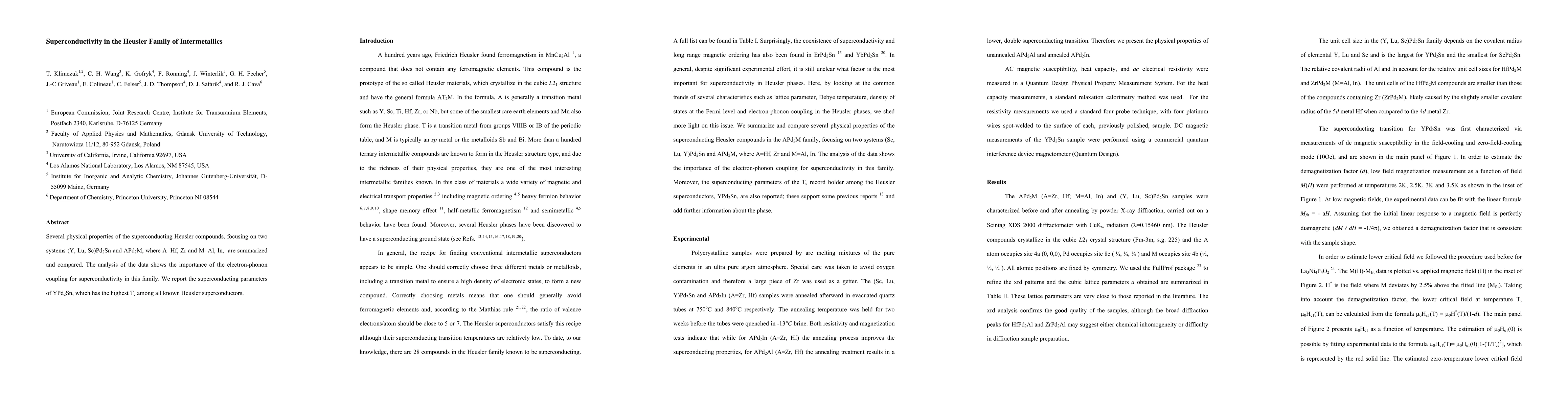 Several physical properties of the superconducting Heusler compounds, focusing on two systems (Y, Lu, Sc)Pd2Sn and APd2M, where A=Hf, Zr and M=Al, In, are summarized and compared. The analysis of the data shows the importance of the electron-phonon coupling for superconductivity in this family. We report the superconducting parameters of YPd2Sn, which has the highest Tc among all known Heusler superconductors.